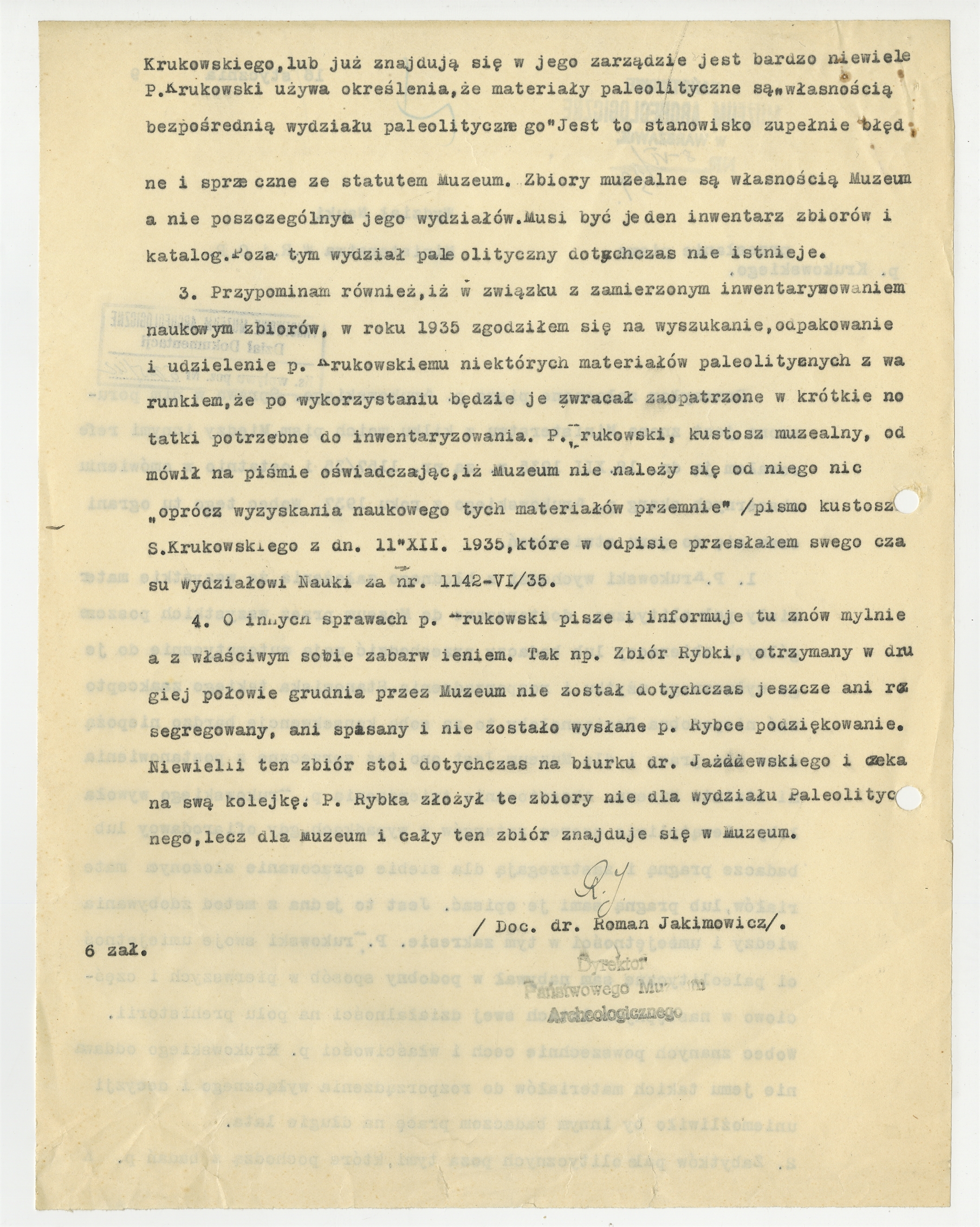 Maszynopis - list Romana Jakimowicza do Wydziału Nauki Ministerstwa W.R. i O.P. z dnia 16 stycznia 1939 roku (cd)