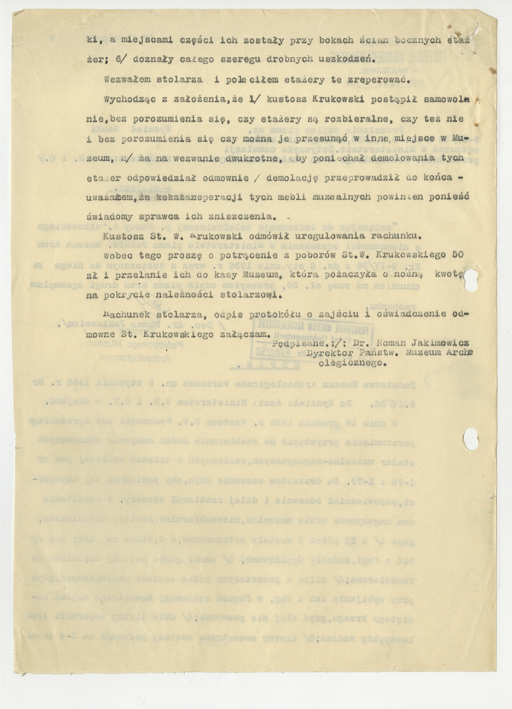Maszynopis - list Romana Jakimowicza do Wydziału Nauki Ministerstwa W.R. i O.P. z dnia 17 listopada 1938 roku