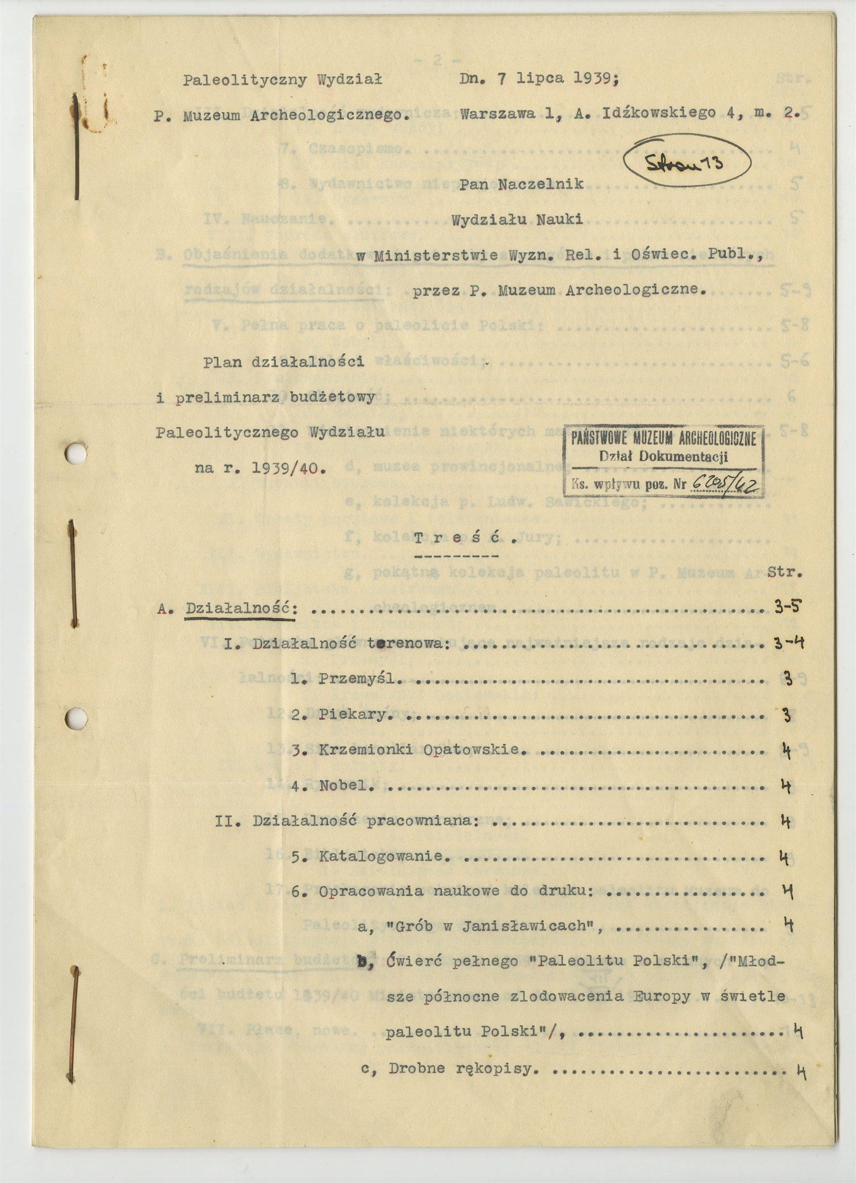 Maszynopis - list Stefana Krukowskiego do Naczelnika Wydziału Nauki Ministerstwa W.R. i O.P z dnia 7 lipca 1939 roku z planem działalności i preliminarzem budżetowym - strona 1