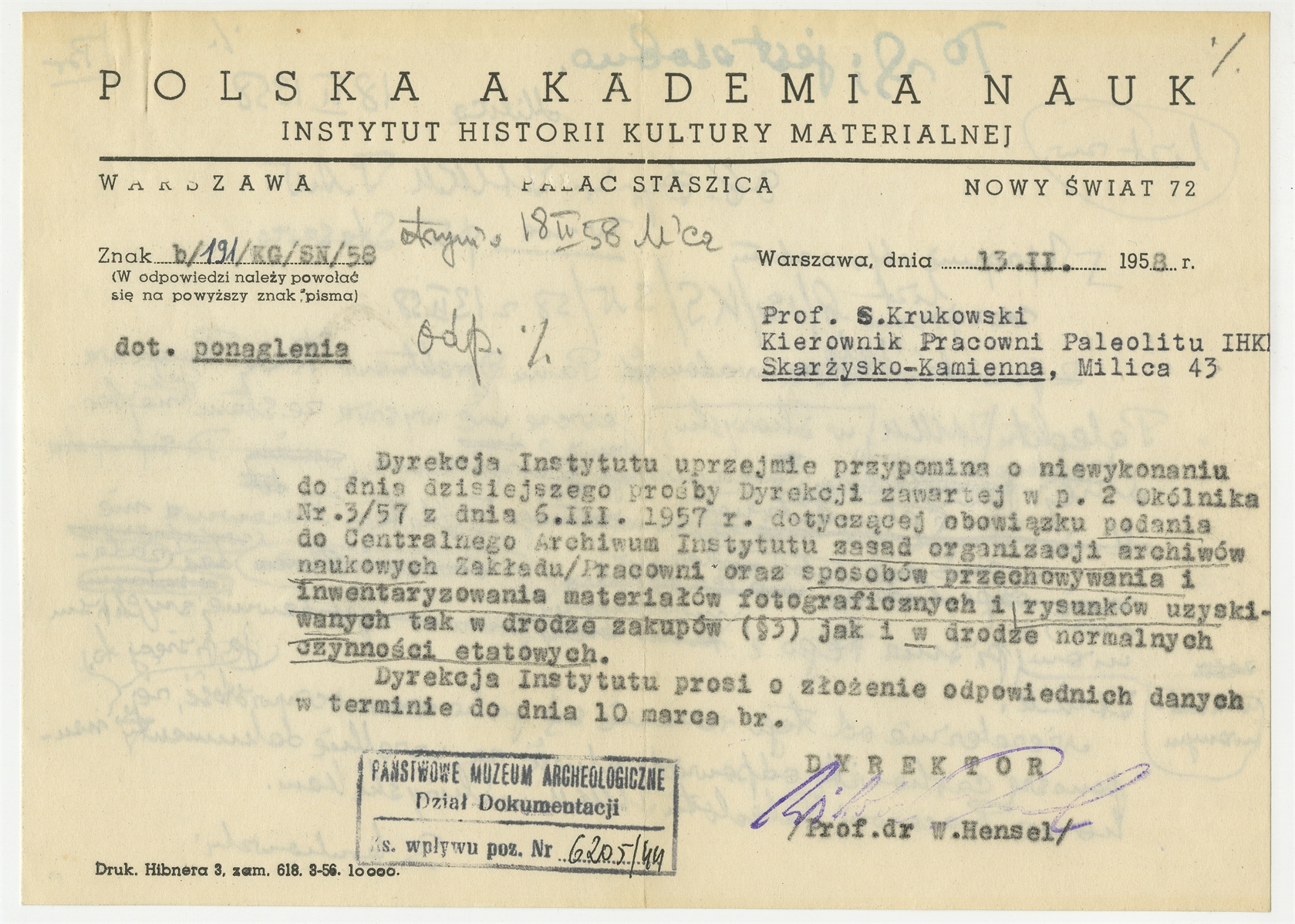 Maszynopis - list W. Hensla dyrektora IHKM PAN do S. Krukowskiego z dnia 13 II 1958 roku