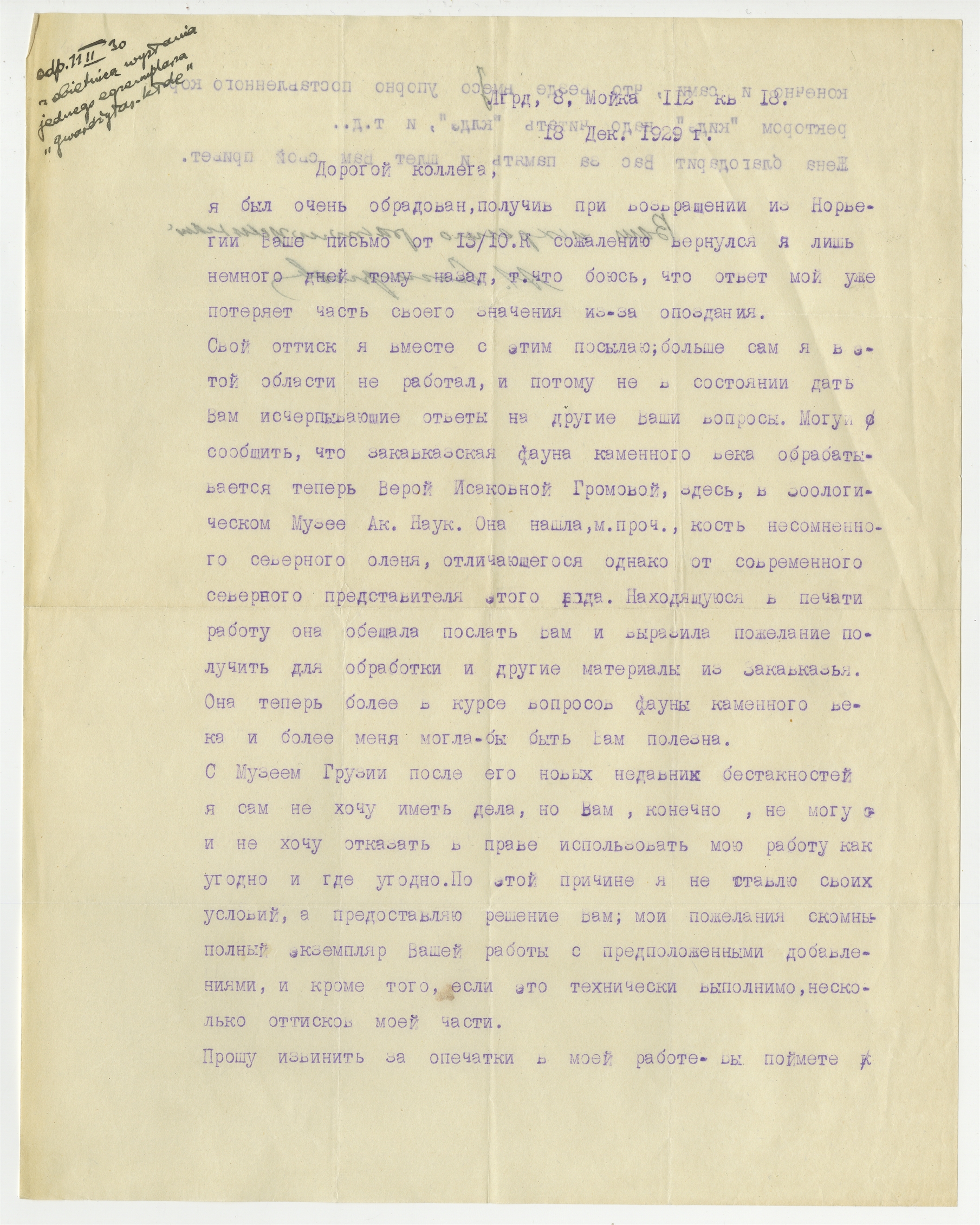 Maszynopis - list w języku rosyjskim od N. Smirnova (?) do Stefana Krukowskiego z dnia 18 grudnia 1929 roku