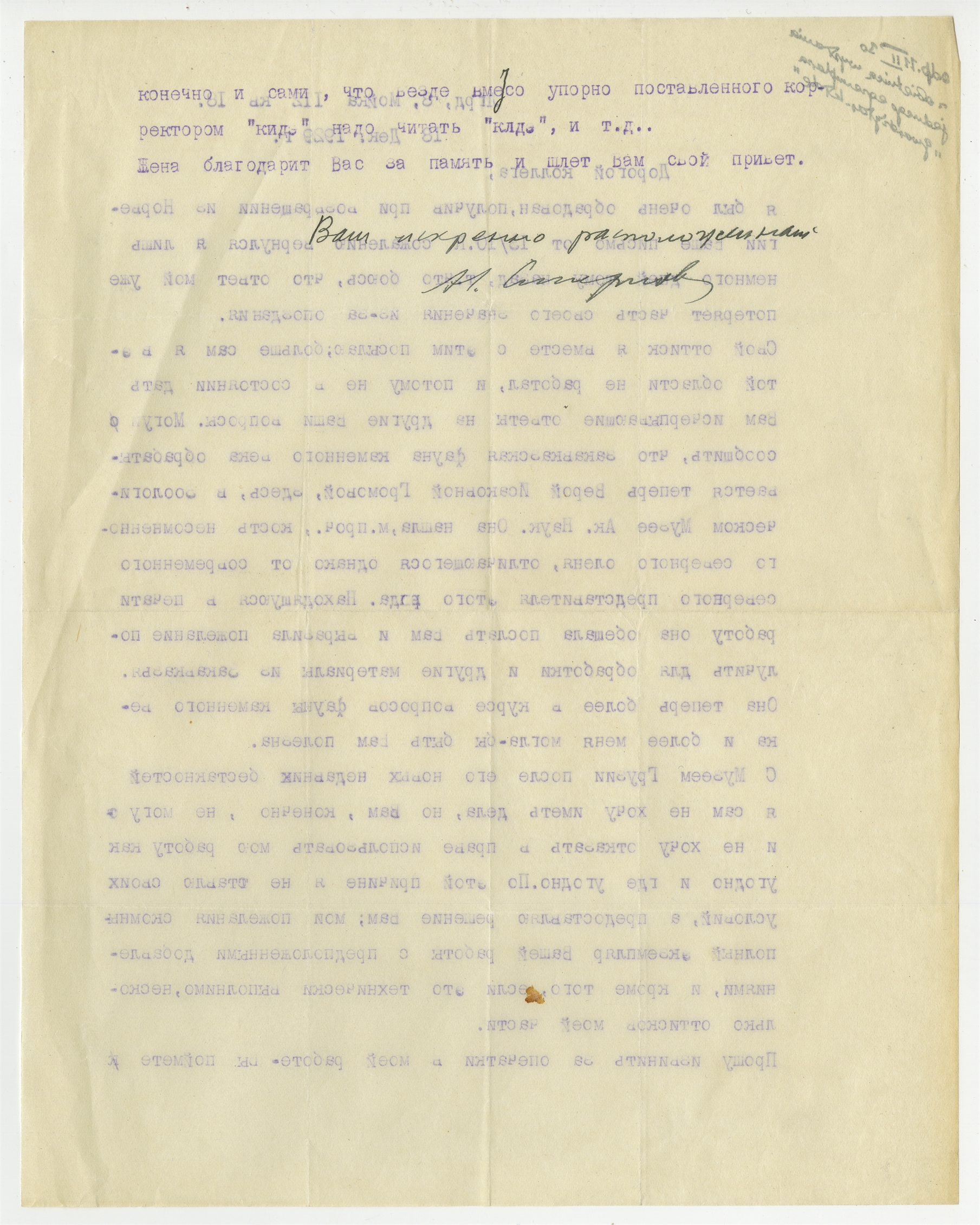 Maszynopis - list w języku rosyjskim od N. Smirnova (?) do Stefana Krukowskiego z dnia 18 grudnia 1929 roku (cd)