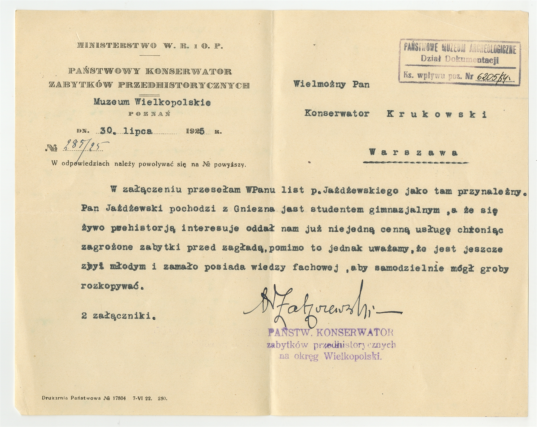 Maszynopis - list Z. Zakrzewskiego do Stefana Krukowskiego z dnia 30 lipca 1925 roku