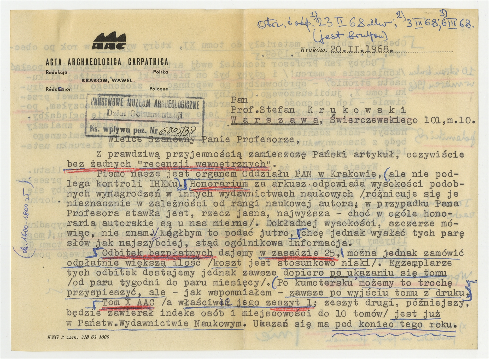 Maszynopis - list A. Żaki do Stefana Krukowskiego z dnia 20.II 1968 roku