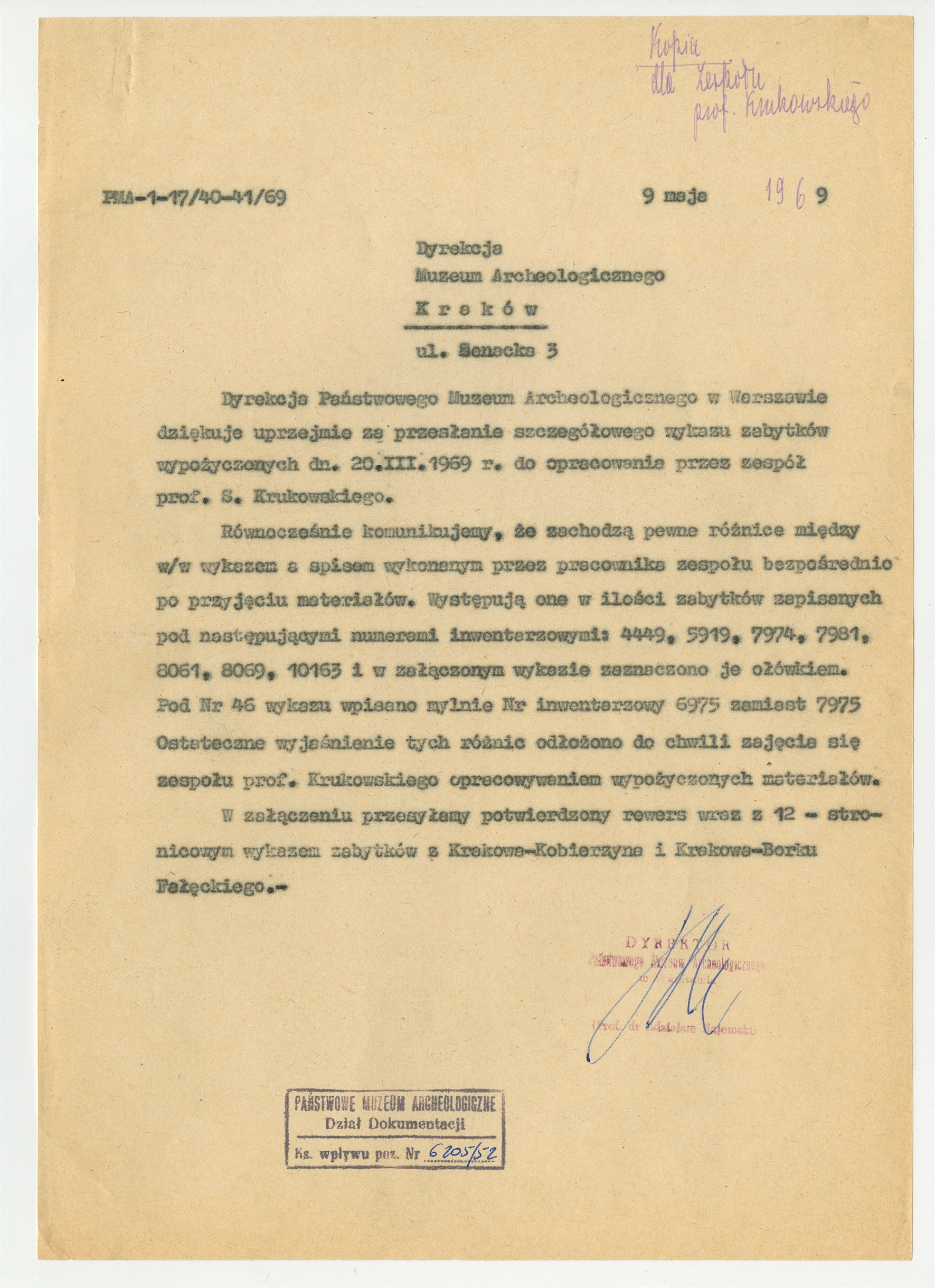 Maszynopis - list Zdzisława Rajewskiego do Dyrekcji Muzeum Archeologicznego w Krakowie