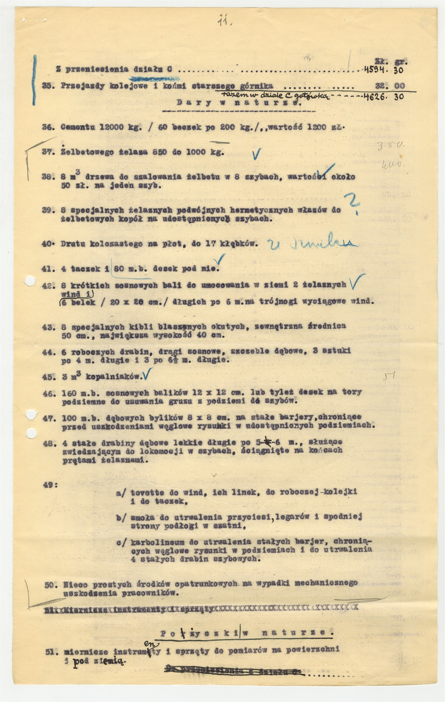 Maszynopis - "Memorjał w sprawie inwestycji i badań naukowych na przedhistorycznej kopalni Krzemionki" Stefana Krukowskiego  z dnia 12 kwietnia  do Zarządu Głównego S.A. Starachowickich Zakładów Górniczych -kosztorys. Strona 11