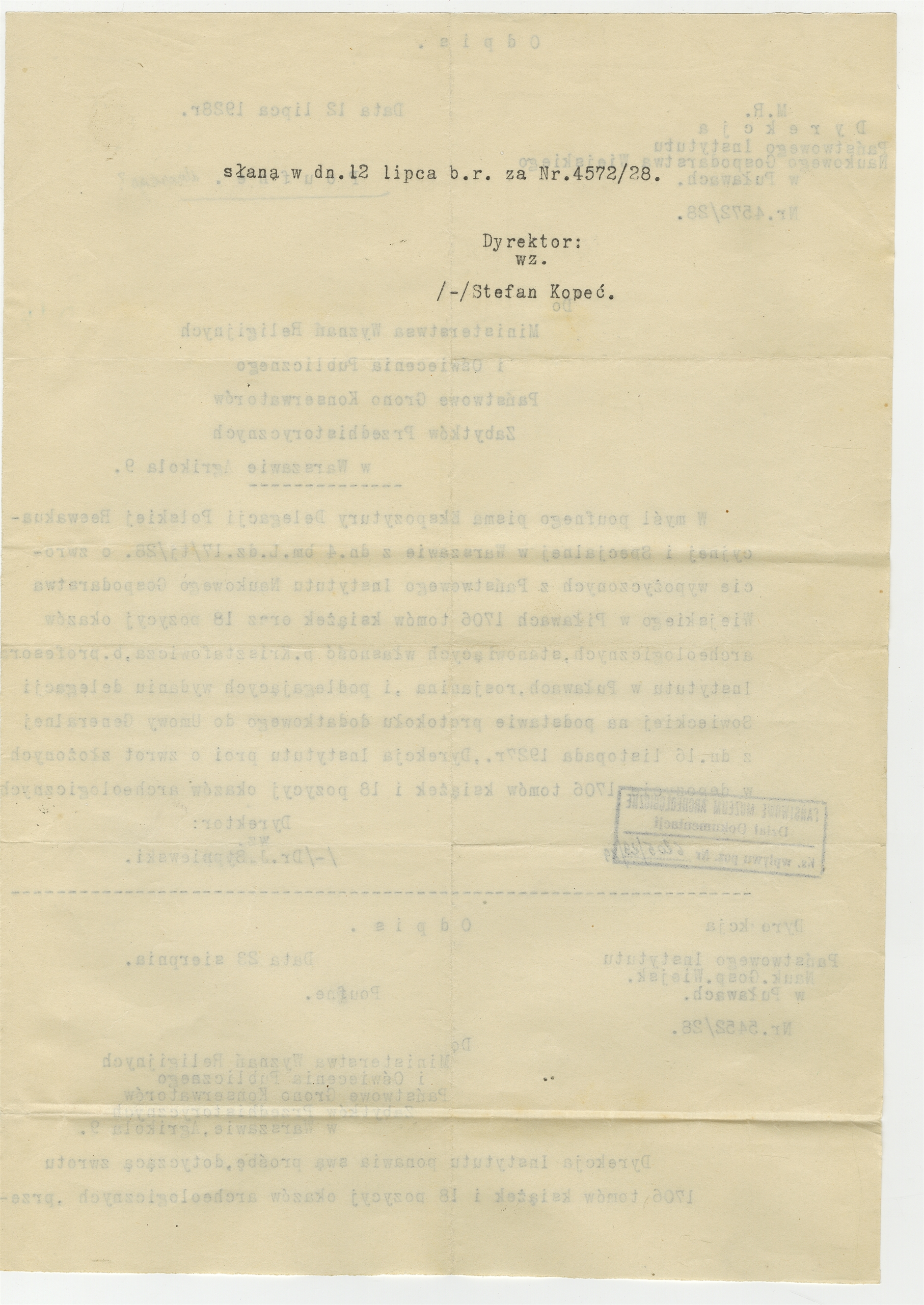 Maszynopis - odpis listu Dyrekcji Państwowego Instytutu Naukowego Gospodarstwa Wiejskiego w Puławach do Ministerstwa Wyznań Religijnych i Oświecenia Publicznego z dnia 23 sierpnia [1928] roku (cd)