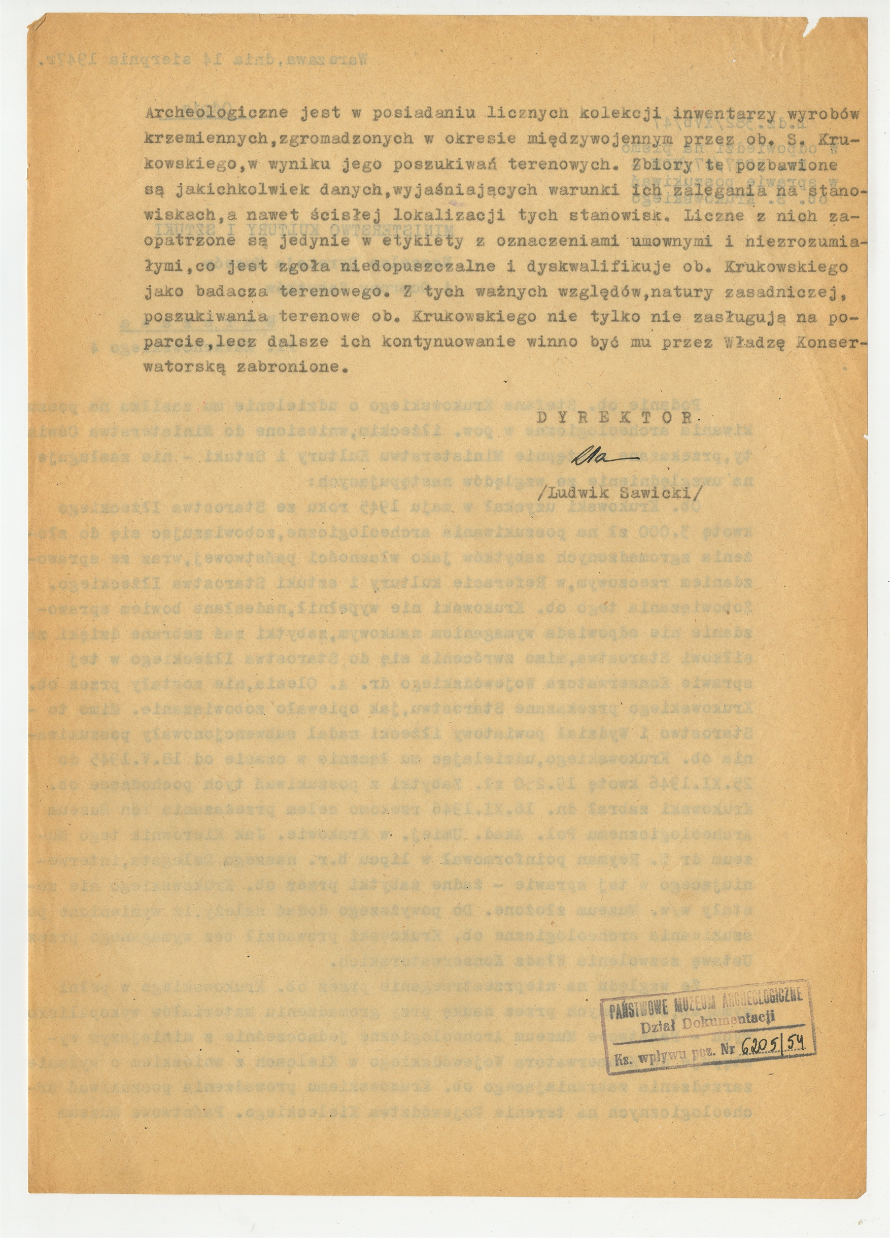 Maszynopis - odpis listu Ludwika Sawickiego do Ministerstwa Kultury i Sztuki z dnia 14 sierpnia 1947 roku w sprawie podania S. Krukowskiego (cd)