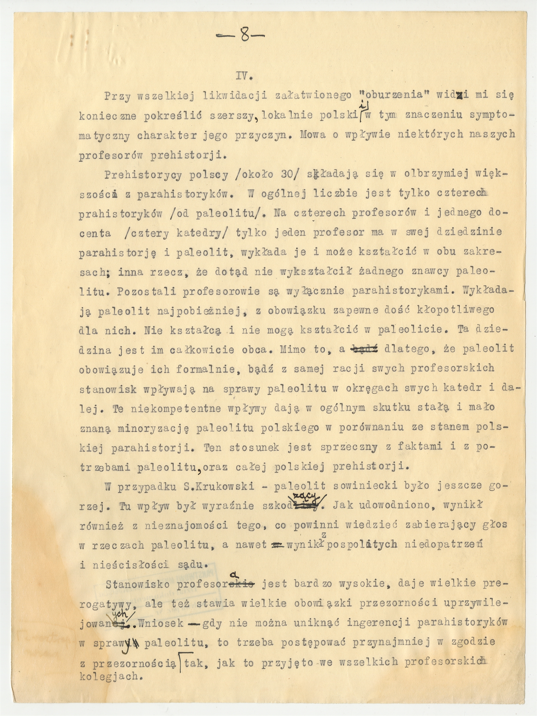Maszynopis - odpis listu Stefana Krukowskiego do prof. J. Kostrzewskiego z dnia 20 czerwca 1937 roku dotyczącego Sowińca - egzemplarz przeznaczony dla H. Hoyera (PAU) - strona 8