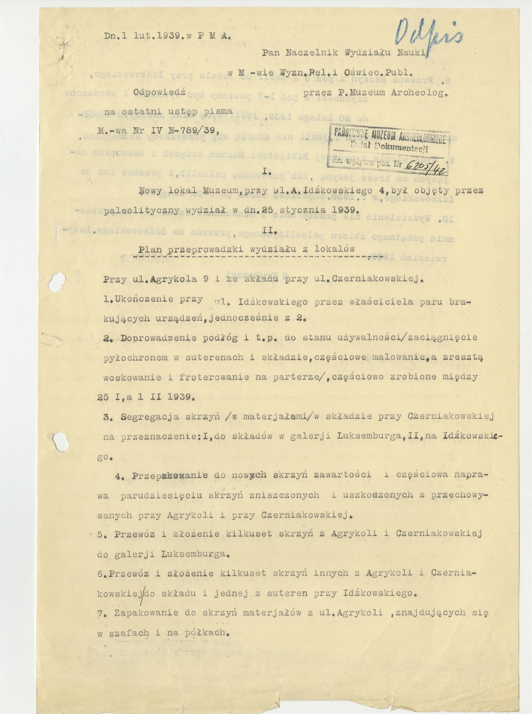 Maszynopis - odpis listu Stefana Krukowskiego do Wydziału Nauki Ministerstwa W.R. i O.P. z dnia 1 lutego 1939 roku w sprawie przeprowadzki