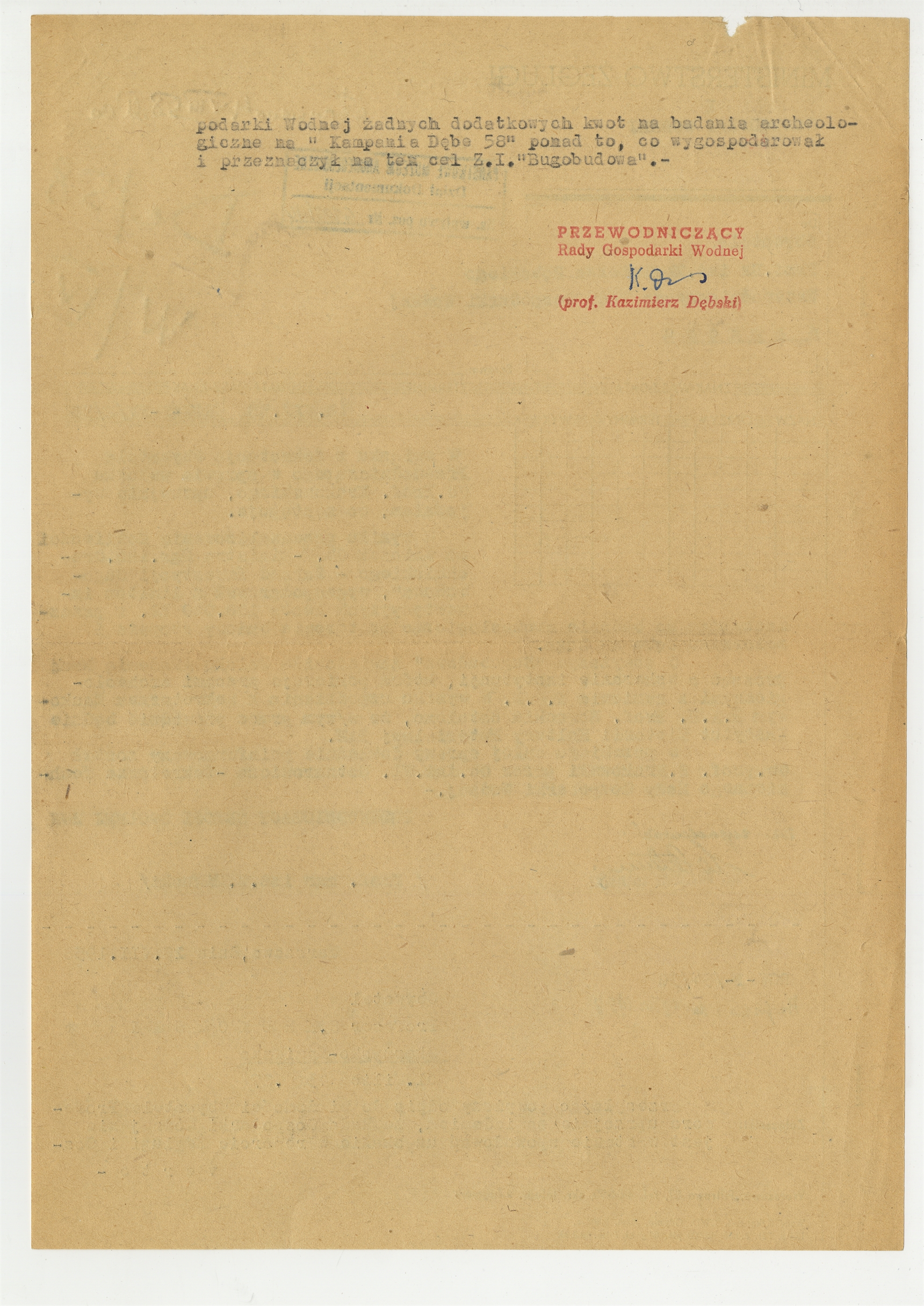 Maszynopis - odpis listu Z. Mikuckiego do Kazimierza Dębskiego Przewodniczącego Rady Gospodarki Wodnej z dn. 28 VII 1958 r. (cd)