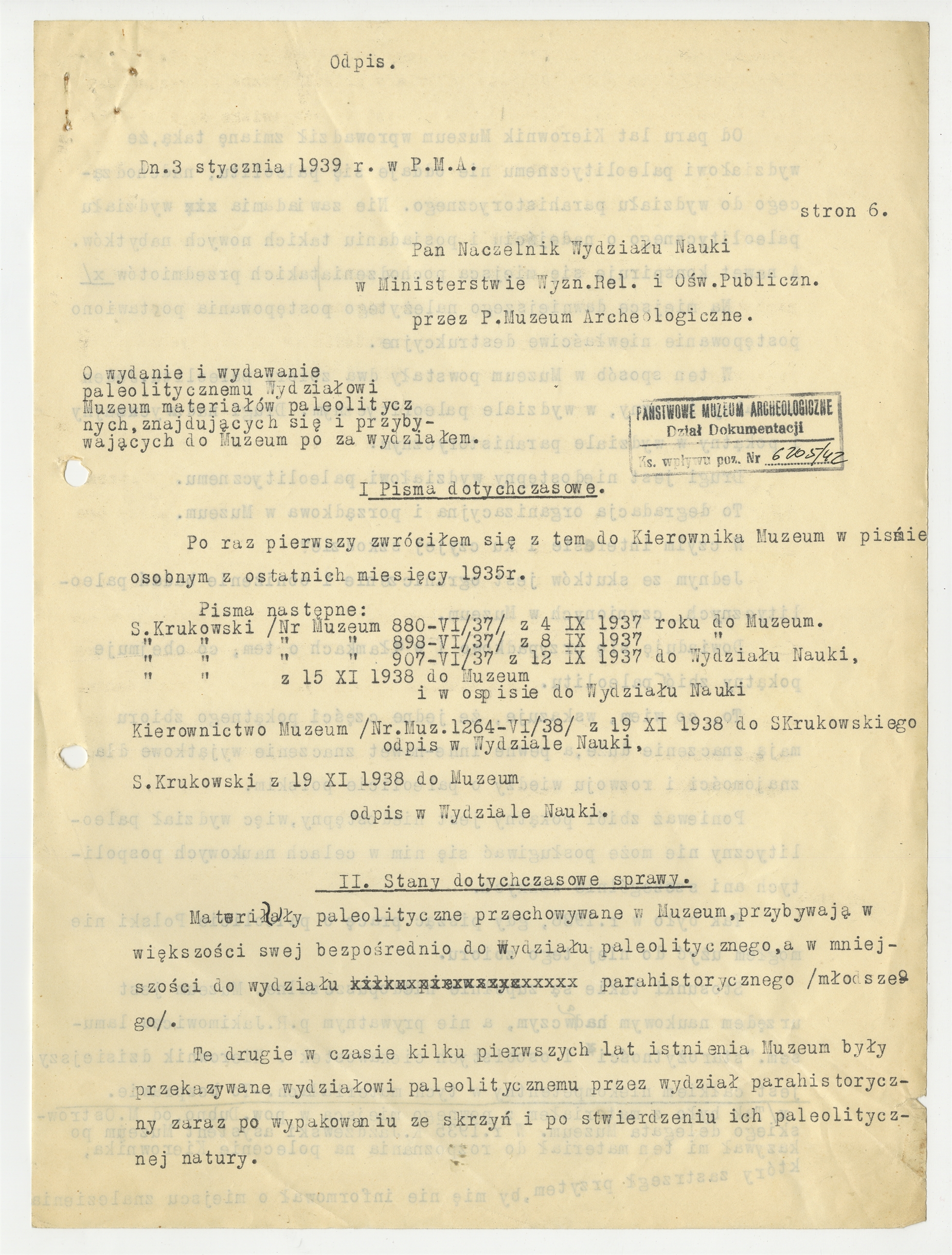Maszynopis - odpis pisma S. Krukowskiego z dnia 3 stycznia 1939 roku do Ministerstwa strona 1