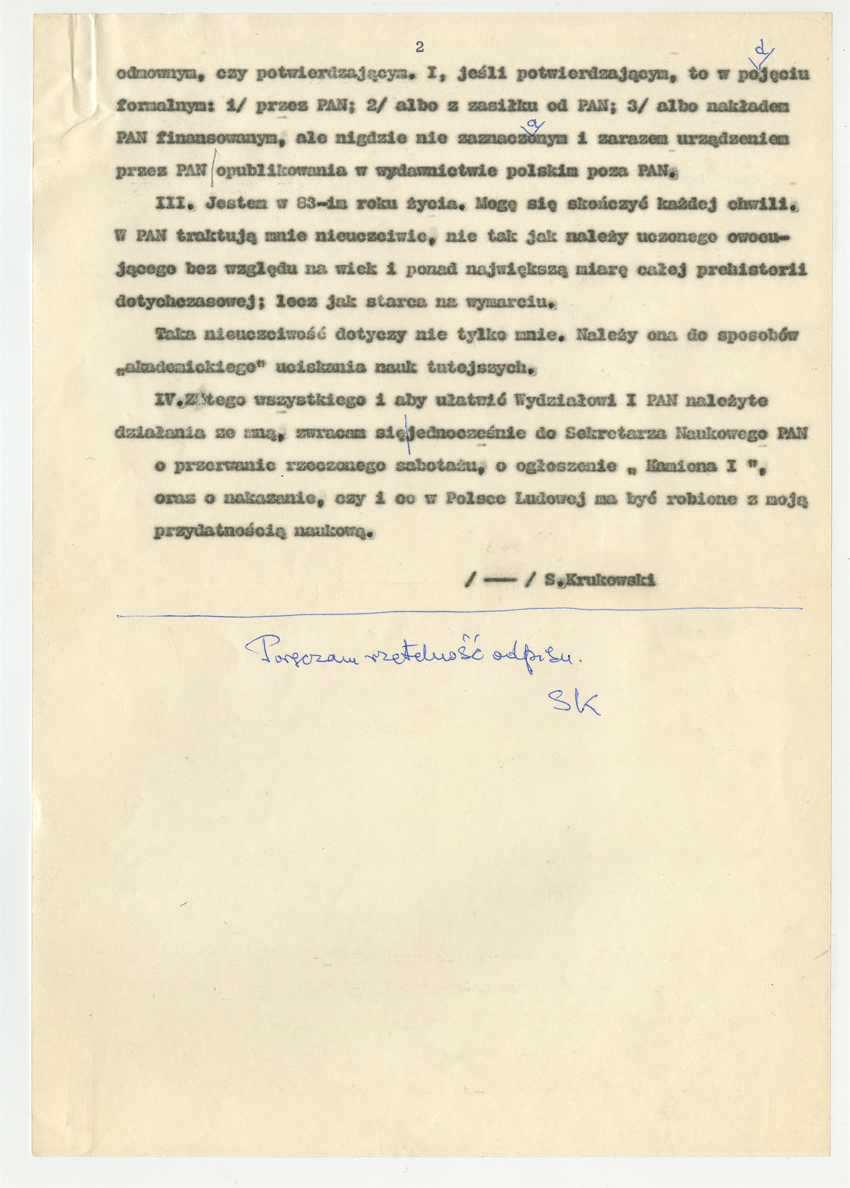 Maszynopis - odpis wniosku Stefana Krukowskiego do Sekretarza Naukowego PAN z dn. 9 VIII 1972 r. (cd)