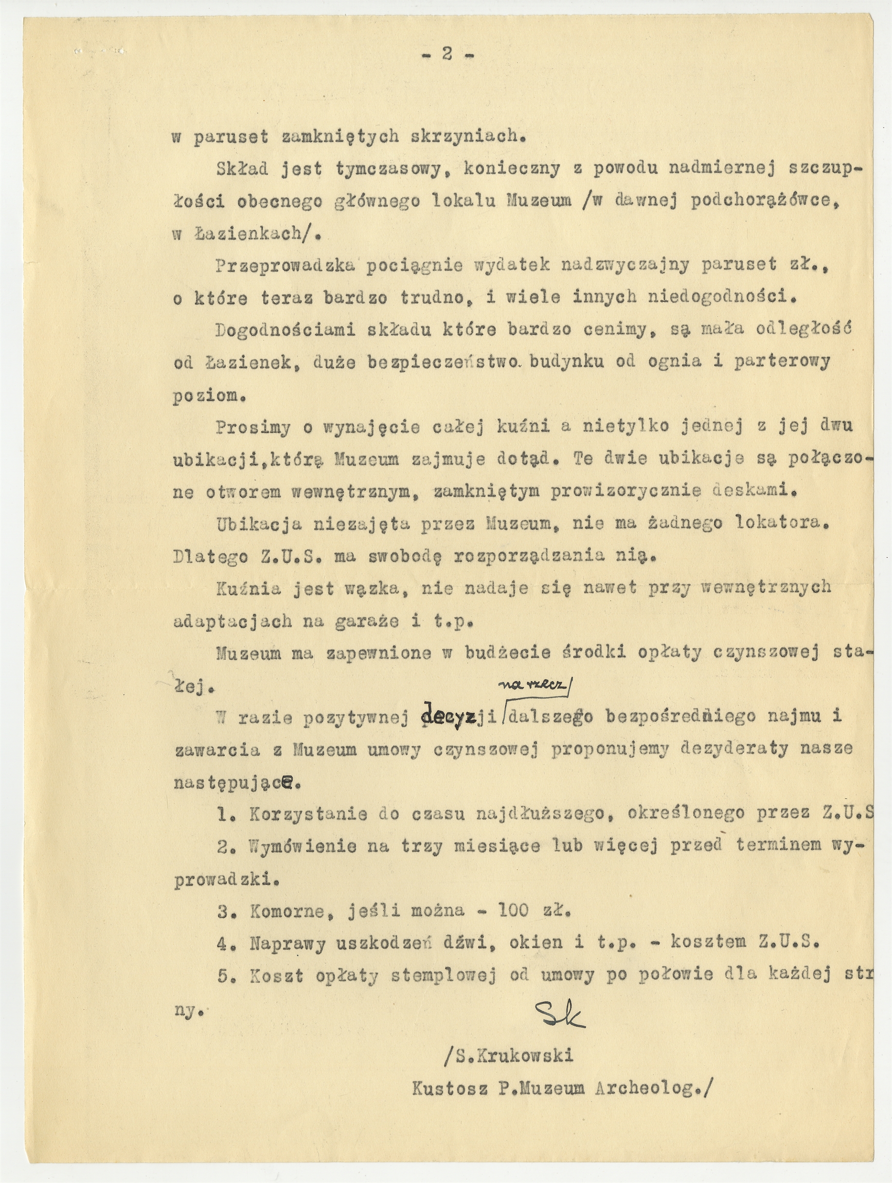 Maszynopis pisma prof. Stefana Krukowskiego z dn. 18 czerwca 1937 r. skierowanego do Z. Wachowskiego - pismo w sprawie wynajęcia dawnej kuźni (cd)