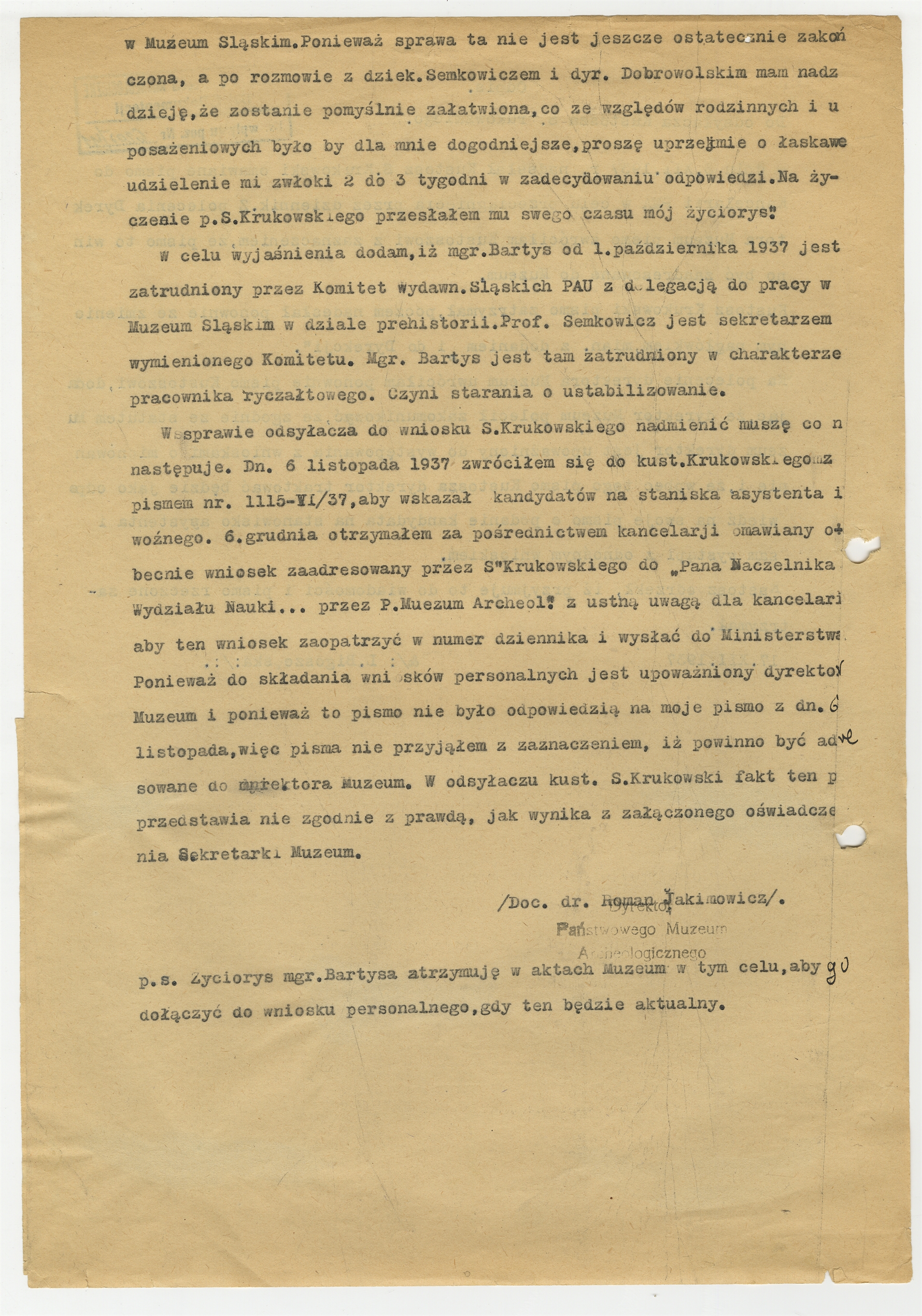 Maszynopis pisma z dnia 7 stycznia 1938 r. skierowanym do Wydziału Nauk Ministerstwa Wyznań Relig. i Oświecenia Publicznego (PMA Nr 1311-IV/37) (cd)