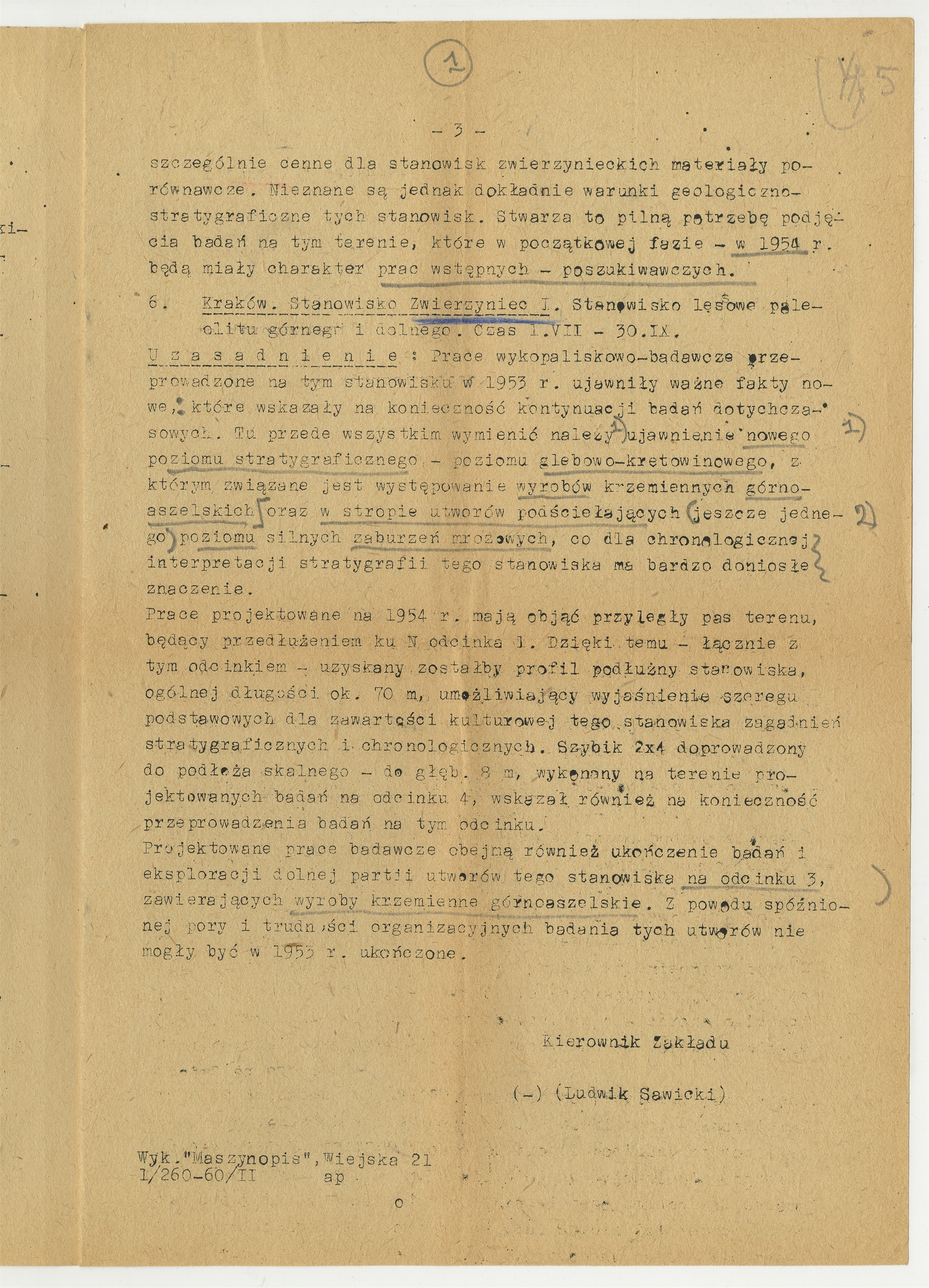 Maszynopis - Plan prac wykopaliskowo-badawczych Zakładu Prehistorii Czwartorzędu w roku 1954 z dn. 23 X 1953 r. (cd)