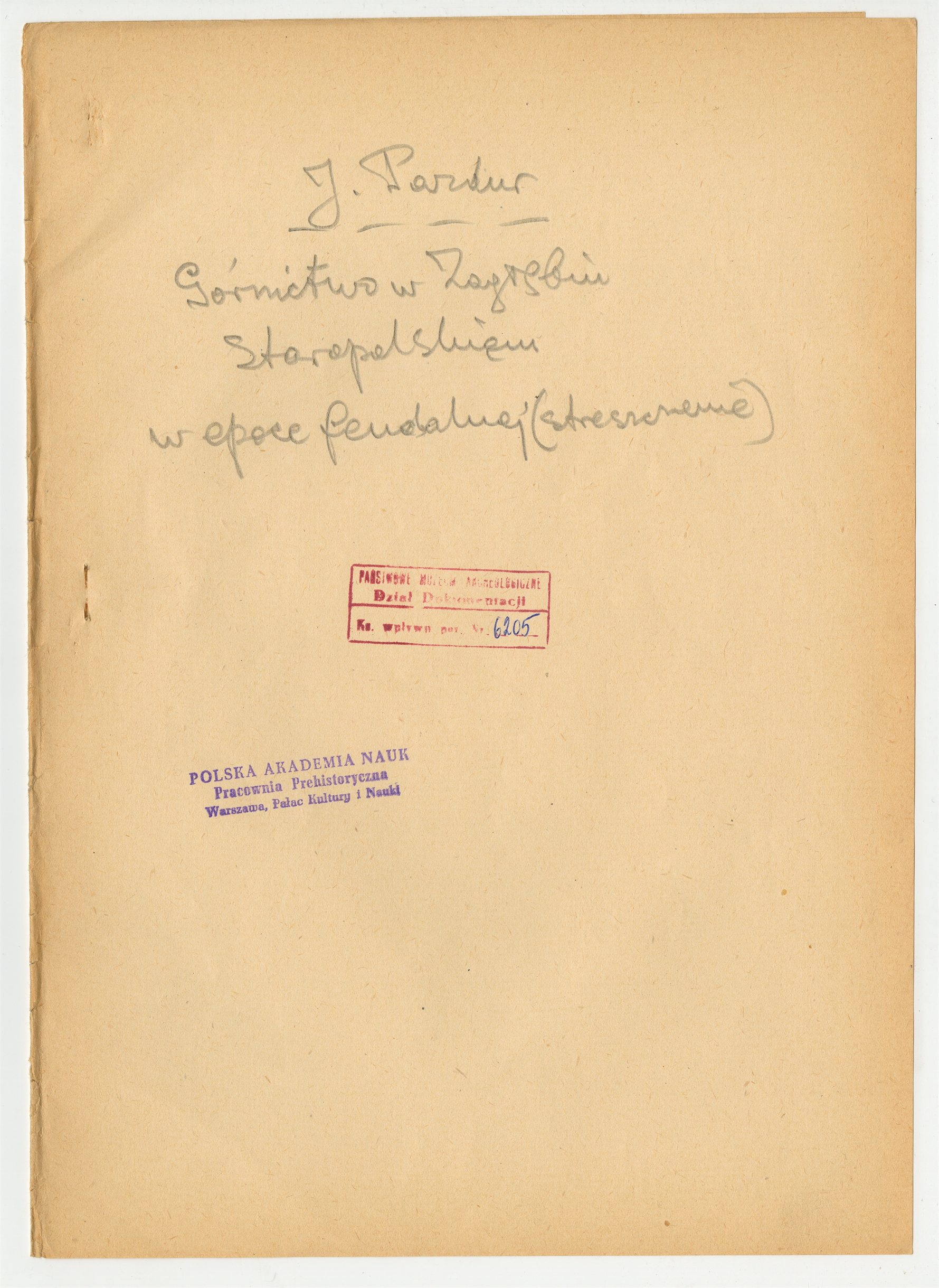 Maszynopis - praca Jana Pazdura pt.: "Górnictwo w Zagłębiu Staropolskim w epoce feudalnej." (streszczenie) - okładka