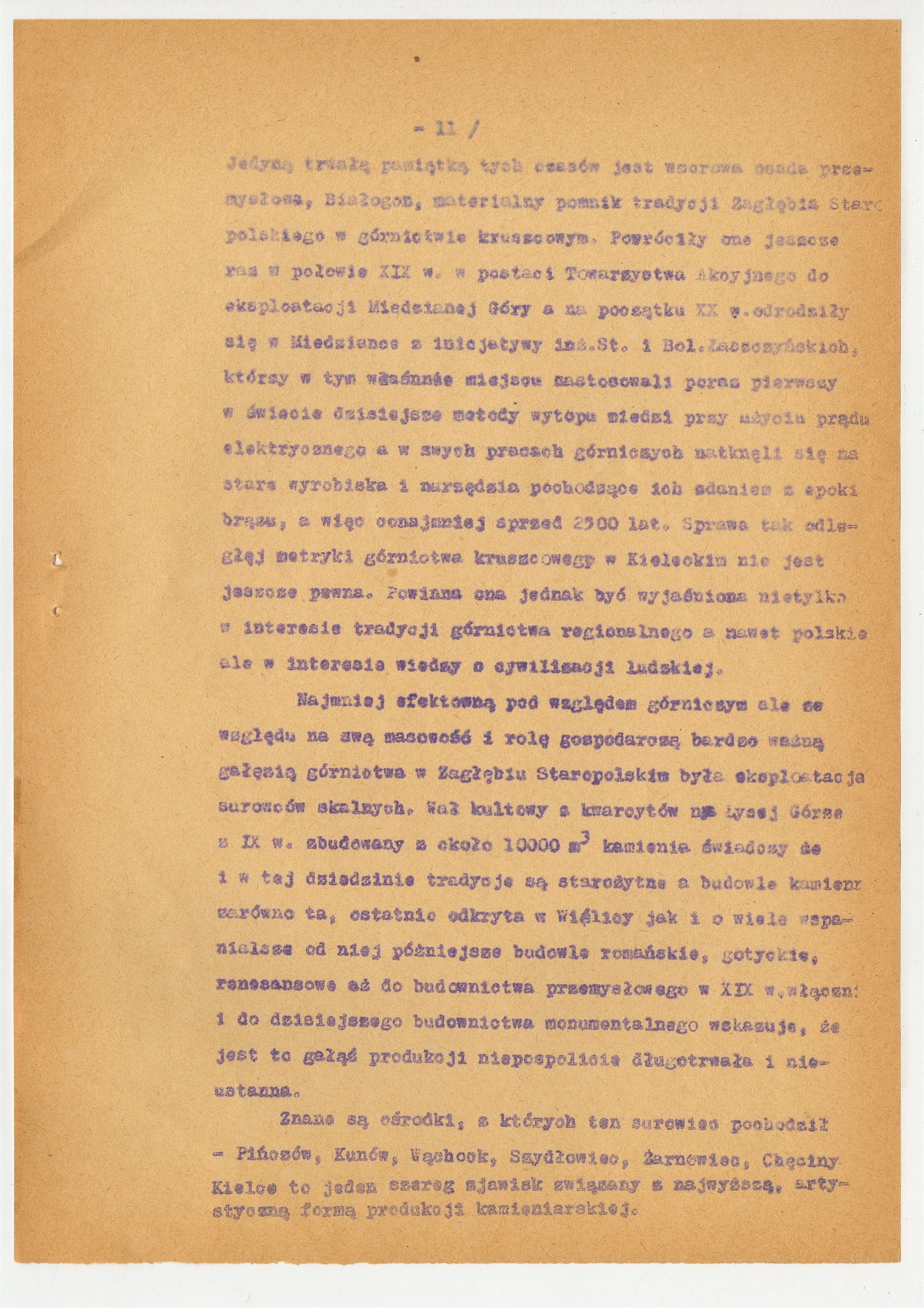 Maszynopis - praca Jana Pazdura pt.: "Górnictwo w Zagłębiu Staropolskim w epoce feudalnej." (streszczenie) - strona 11