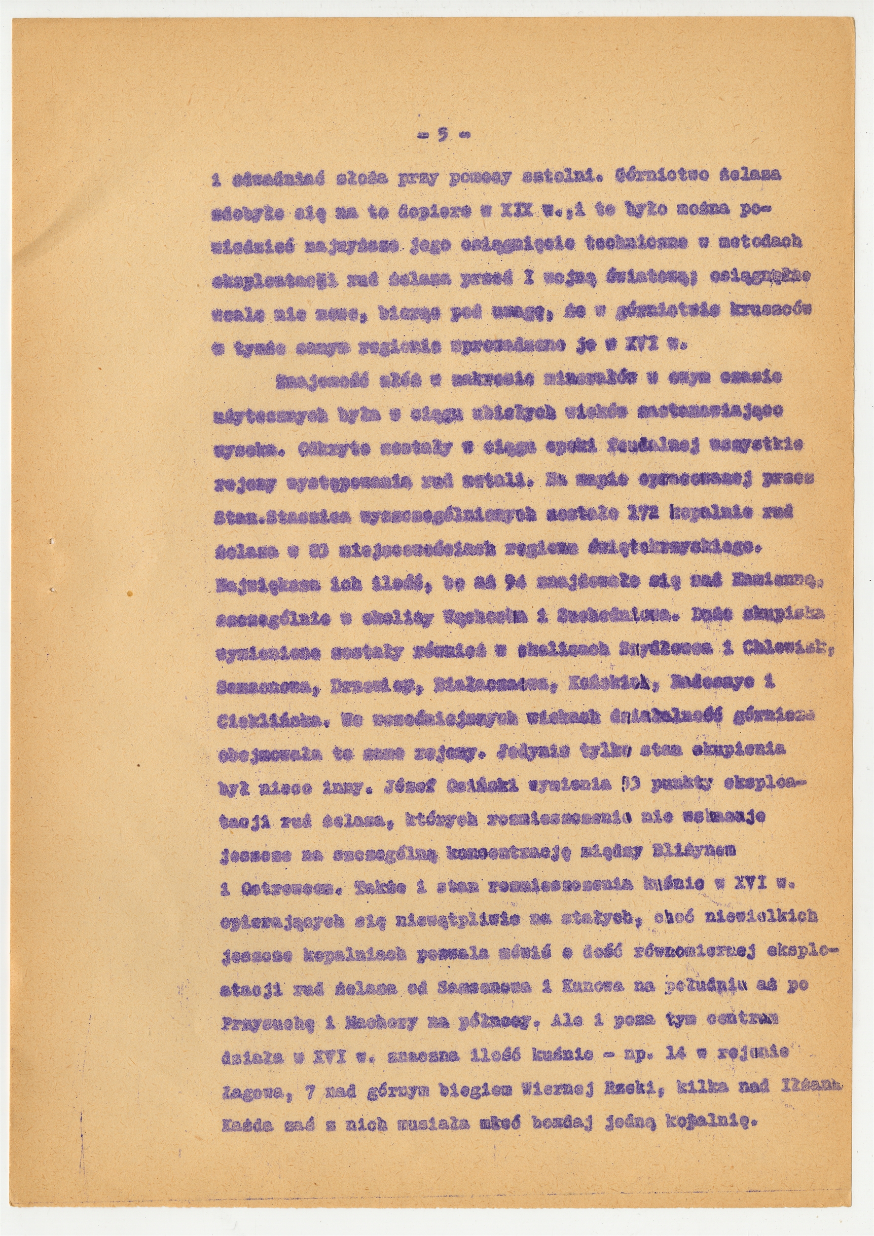 Maszynopis - praca Jana Pazdura pt.: "Górnictwo w Zagłębiu Staropolskim w epoce feudalnej." (streszczenie) - strona 5