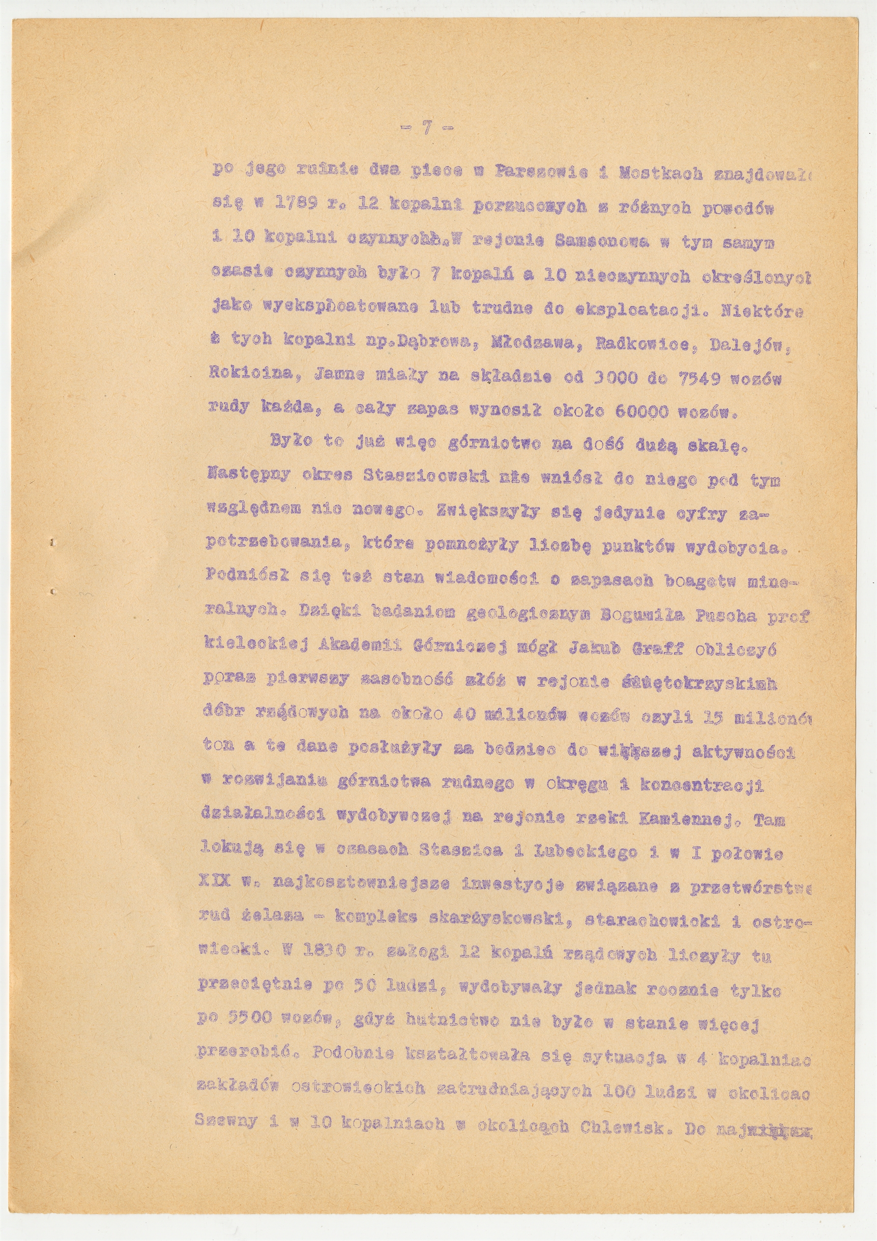 Maszynopis - praca Jana Pazdura pt.: "Górnictwo w Zagłębiu Staropolskim w epoce feudalnej." (streszczenie) - strona 7