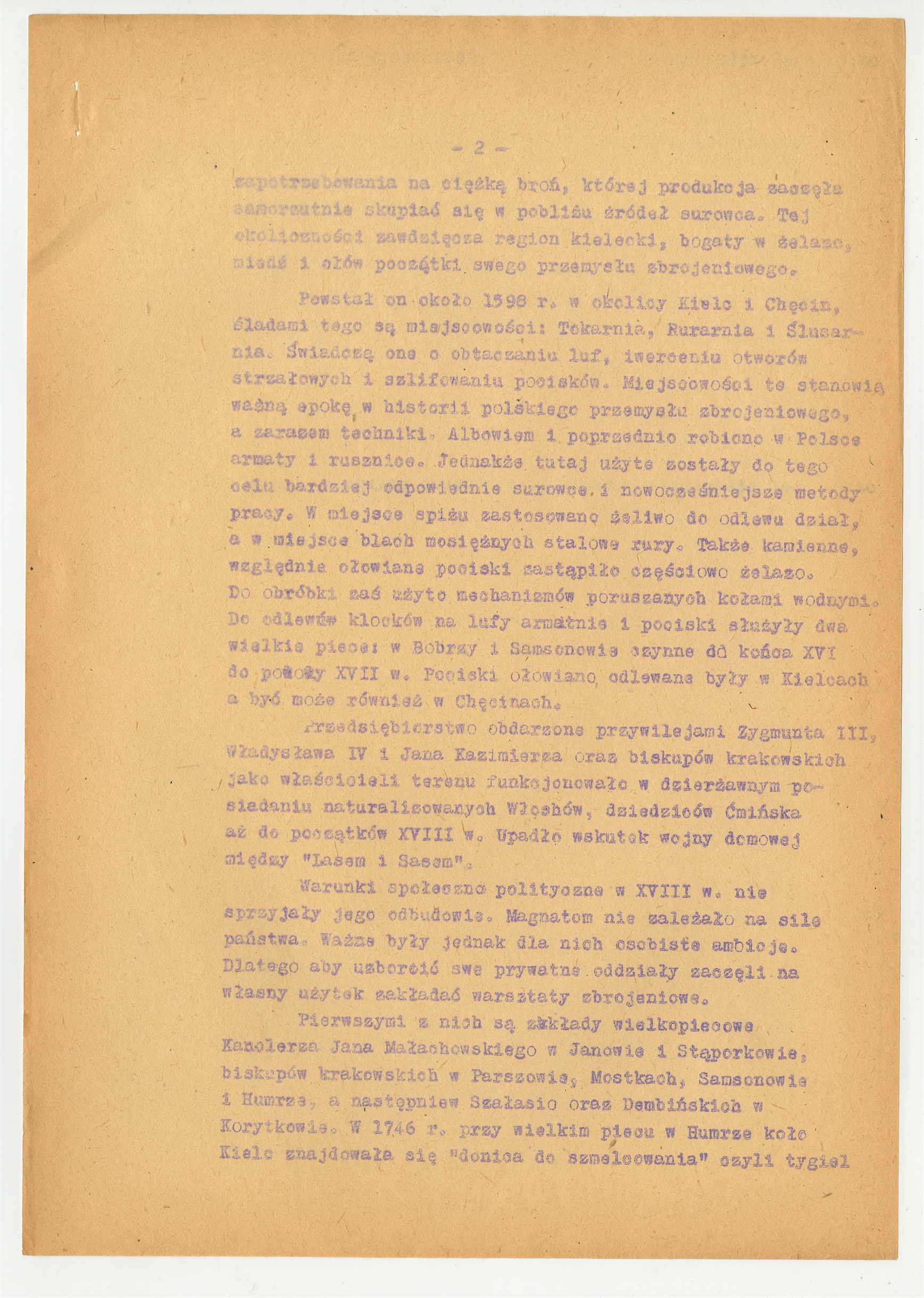 Maszynopis - praca Jana Pazdura pt.: "Przemysł zbrojeniowy Zagłębia Staropolskiego do poł XIX w." (streszczenie) - strona 2