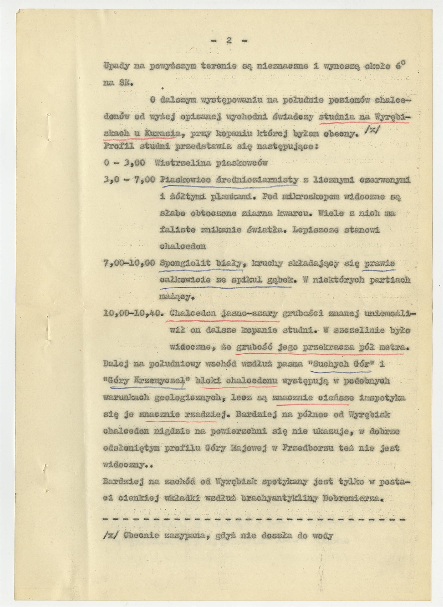Maszynopis - praca Stefana Cieślińskiego „Chalcedon środkowo-kredowy zachodniego obrzeżenia gór świętokrzyskich”. Strona 2