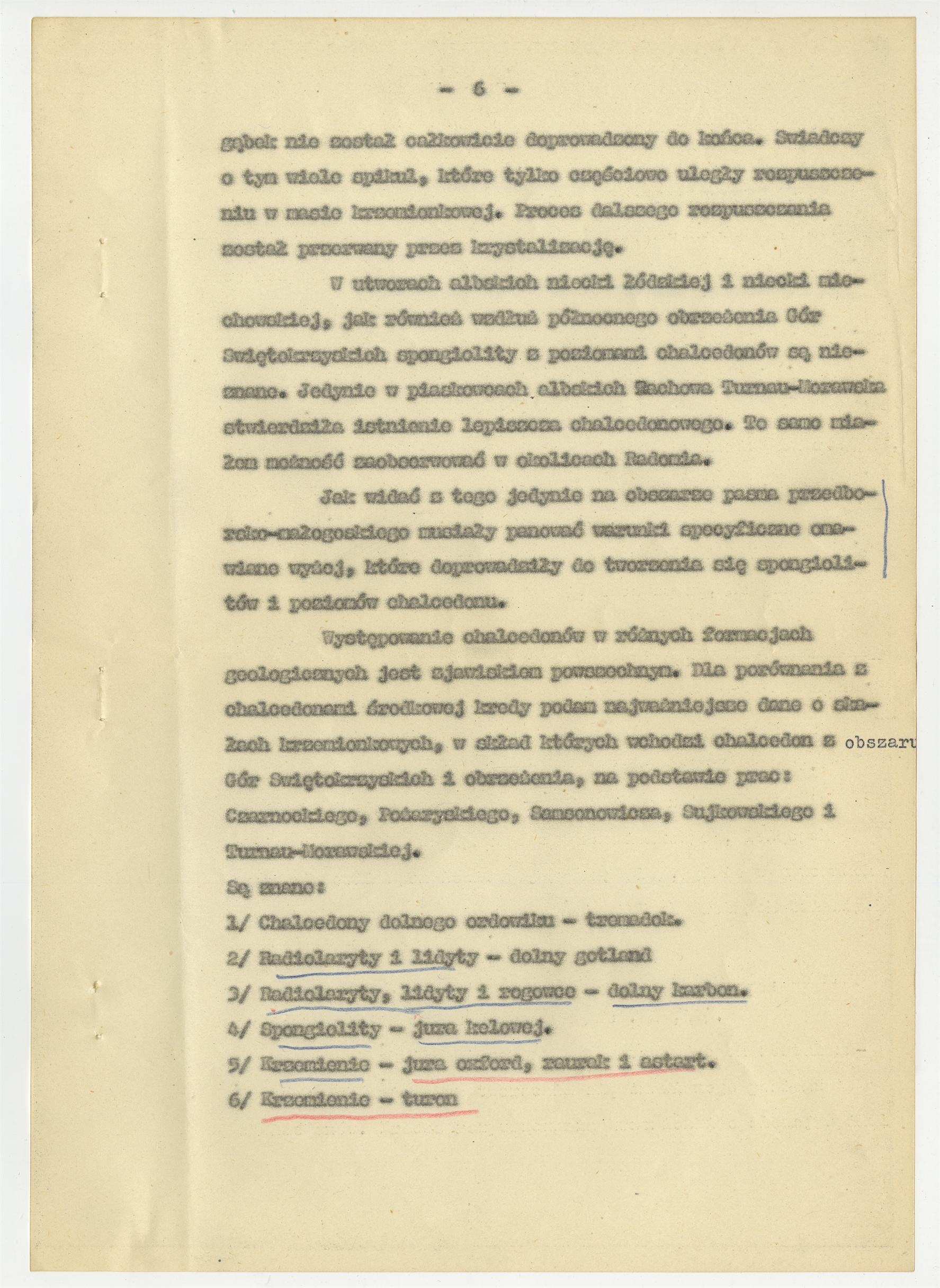 Maszynopis - praca Stefana Cieślińskiego „Chalcedon środkowo-kredowy zachodniego obrzeżenia gór świętokrzyskich”. Strona 6