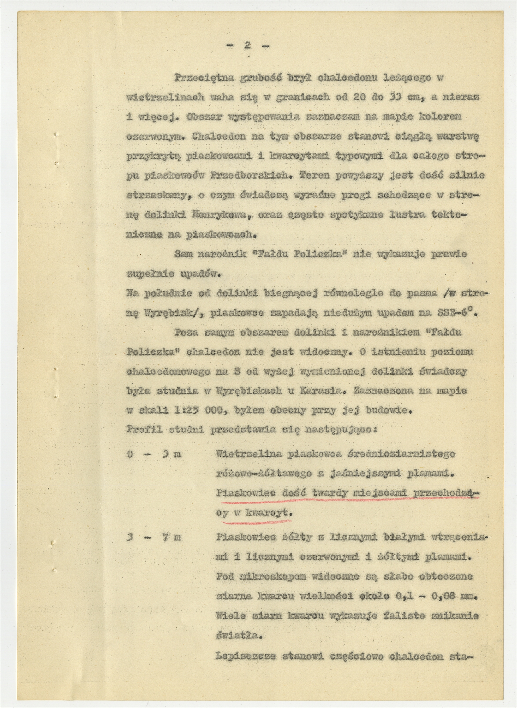 Maszynopis - praca Stefana Cieślińskiego „Notatka o występowaniu chalcedonu środkowo kredowego w okolicach Przedborza nad Pilicą". Strona 2