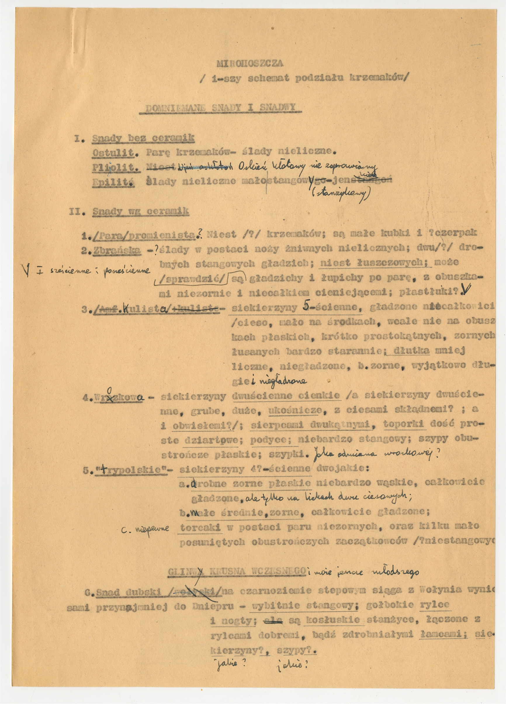 Maszynopis pracy „Mirohoszcza 1-szy schemat podziału krzemków domniemanie snady i snadwy str. 1: „Domniemanie snady i snadwy”