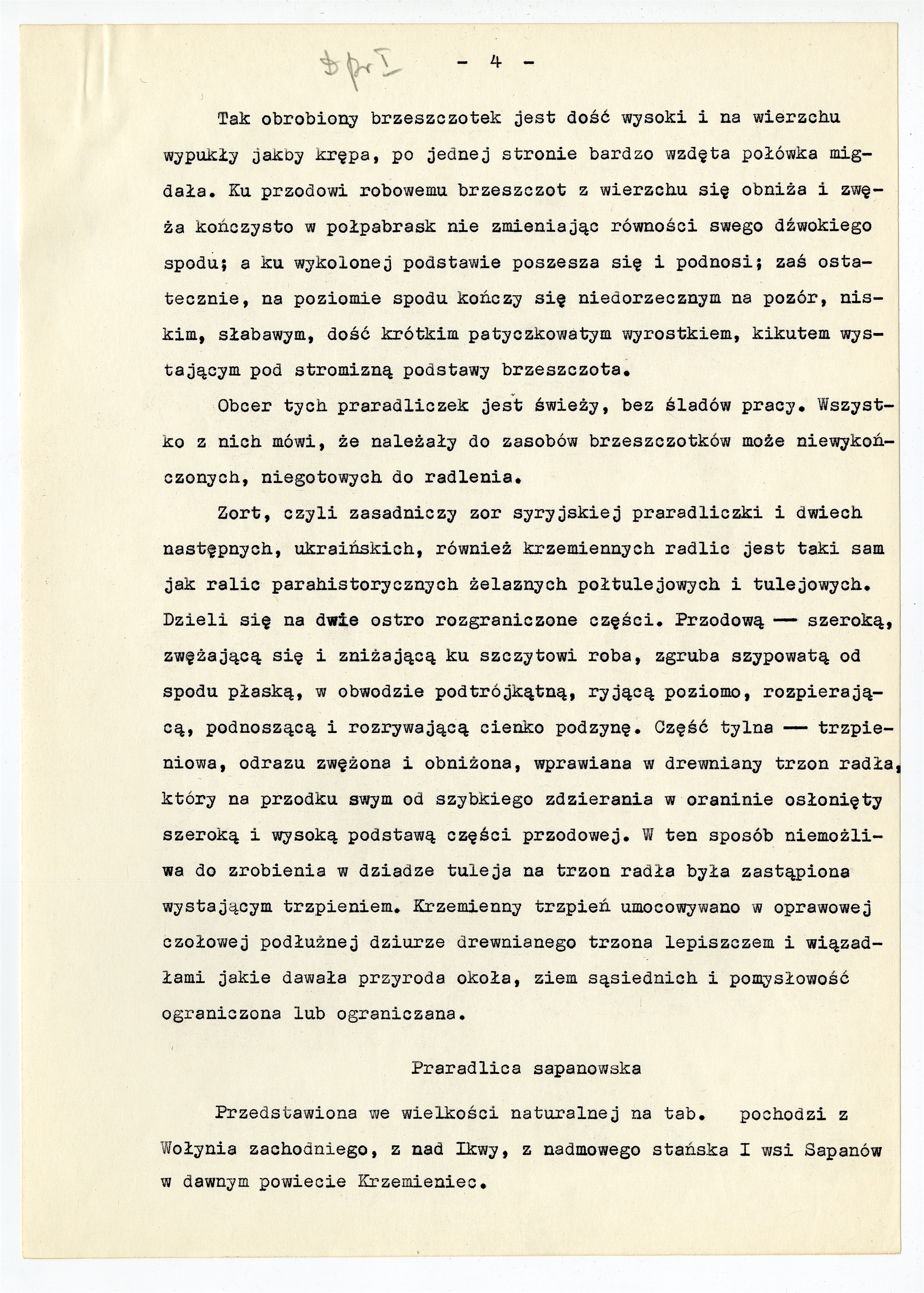 Maszynopis pracy prof. Stefana Krukowskiego pt.: "Do praradlic"; Egzemplarz pierwszy - Praradlica sapanowska