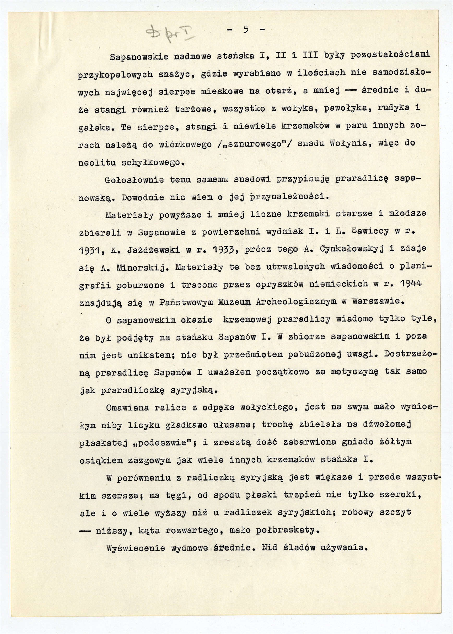 Maszynopis pracy prof. Stefana Krukowskiego pt.: "Do praradlic"; Egzemplarz pierwszy - Praradlica sapanowska (cd)
