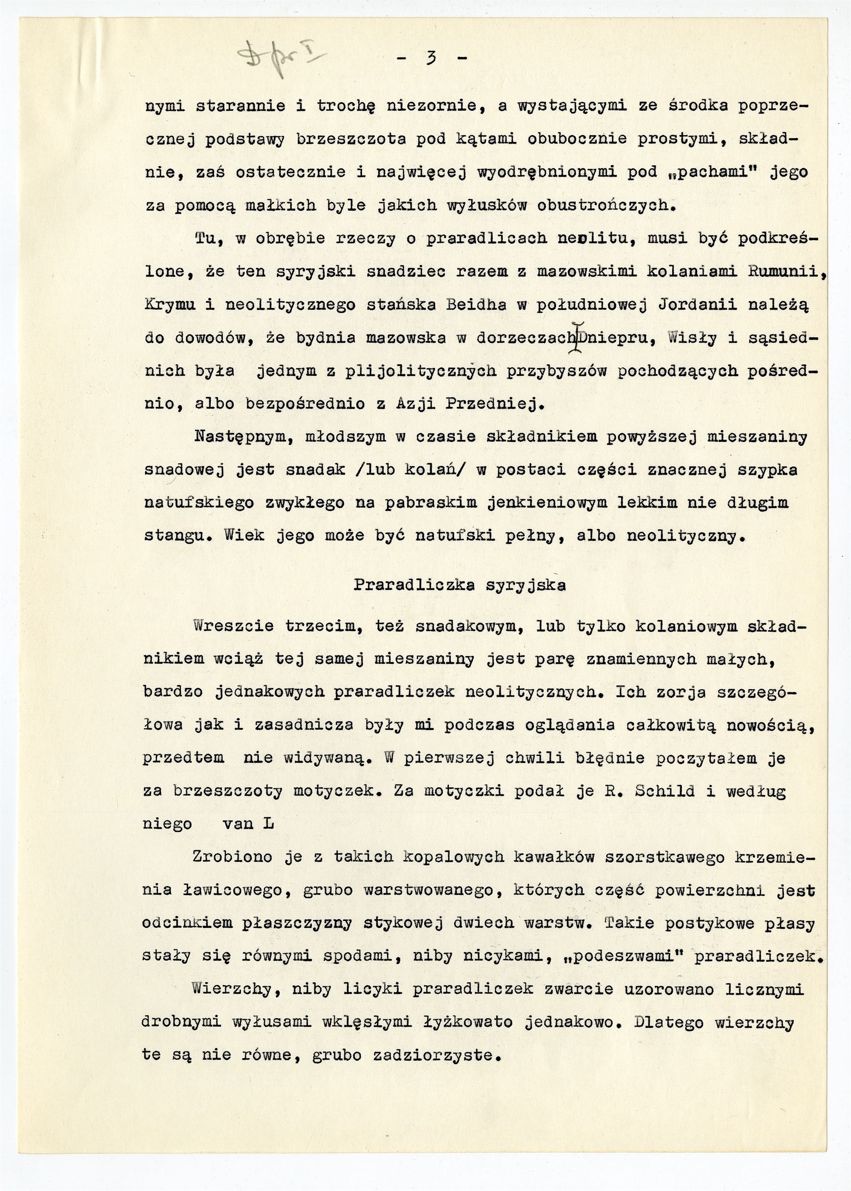Maszynopis pracy prof. Stefana Krukowskiego pt.: "Do praradlic"; Egzemplarz pierwszy - Praradliczka syryjska