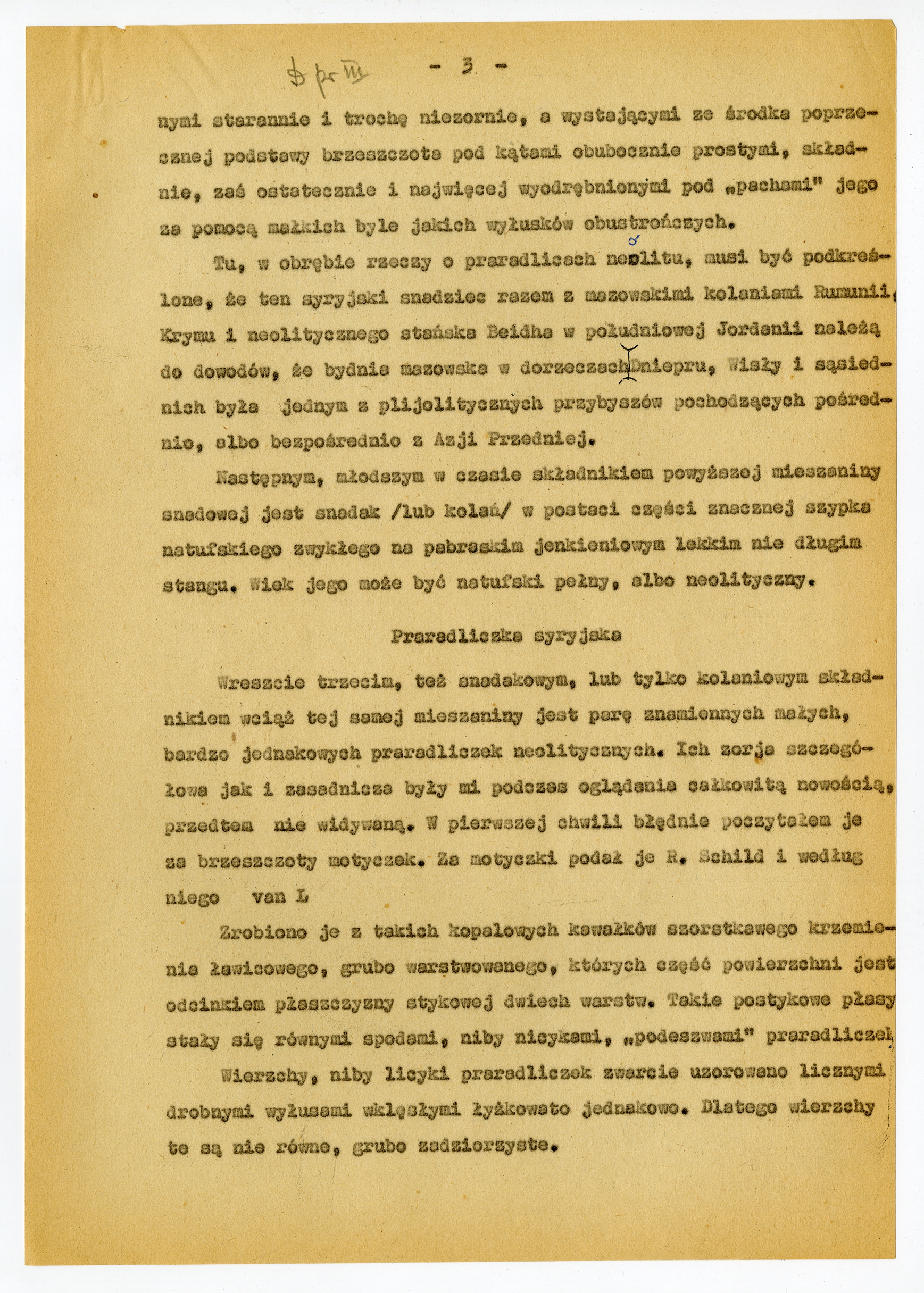 Maszynopis pracy prof. Stefana Krukowskiego pt.: Do praradlic.; Egzemplarz trzeci - Praradliczka syryjska