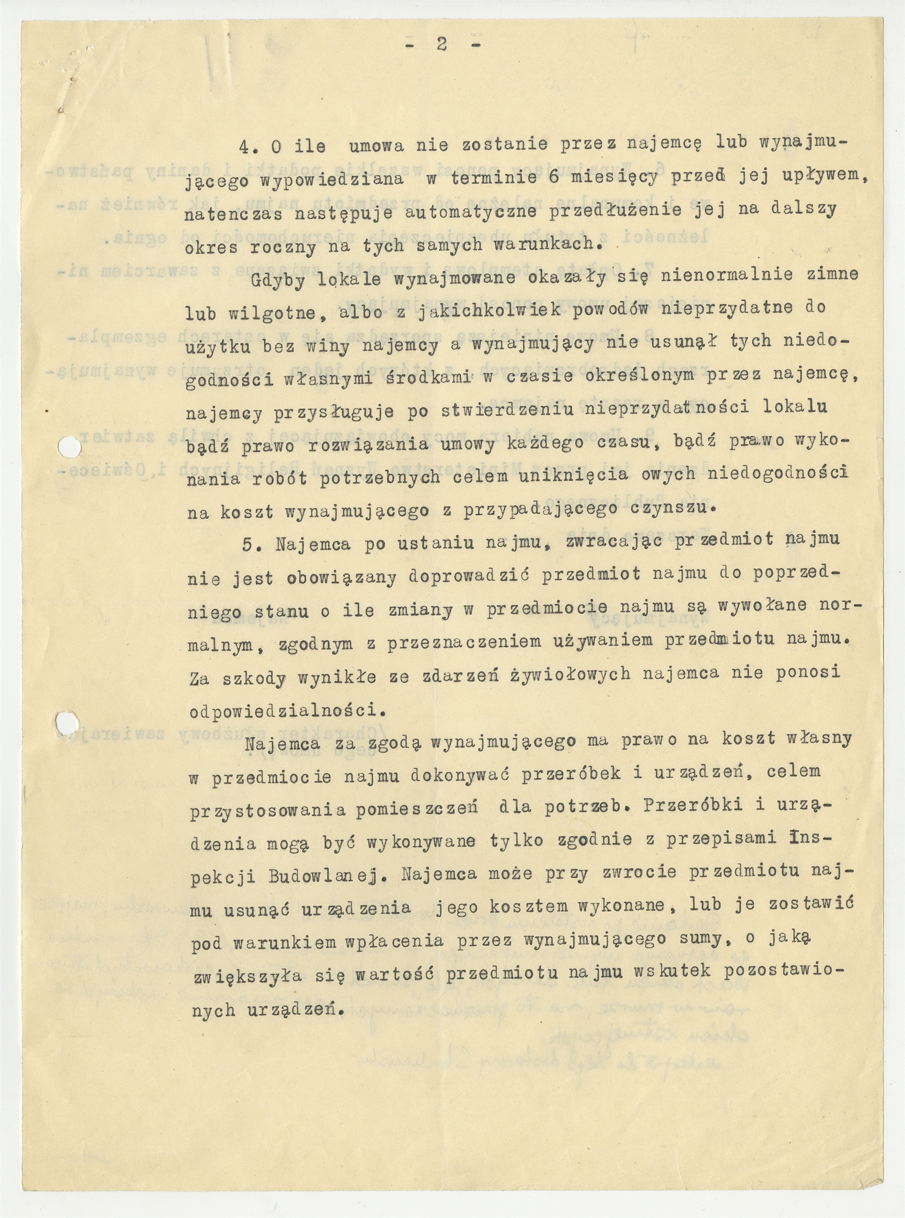 Maszynopis projektu umowy najmu lokalu przy ul. Idźkowskiego 4 w Warszawie (cd)