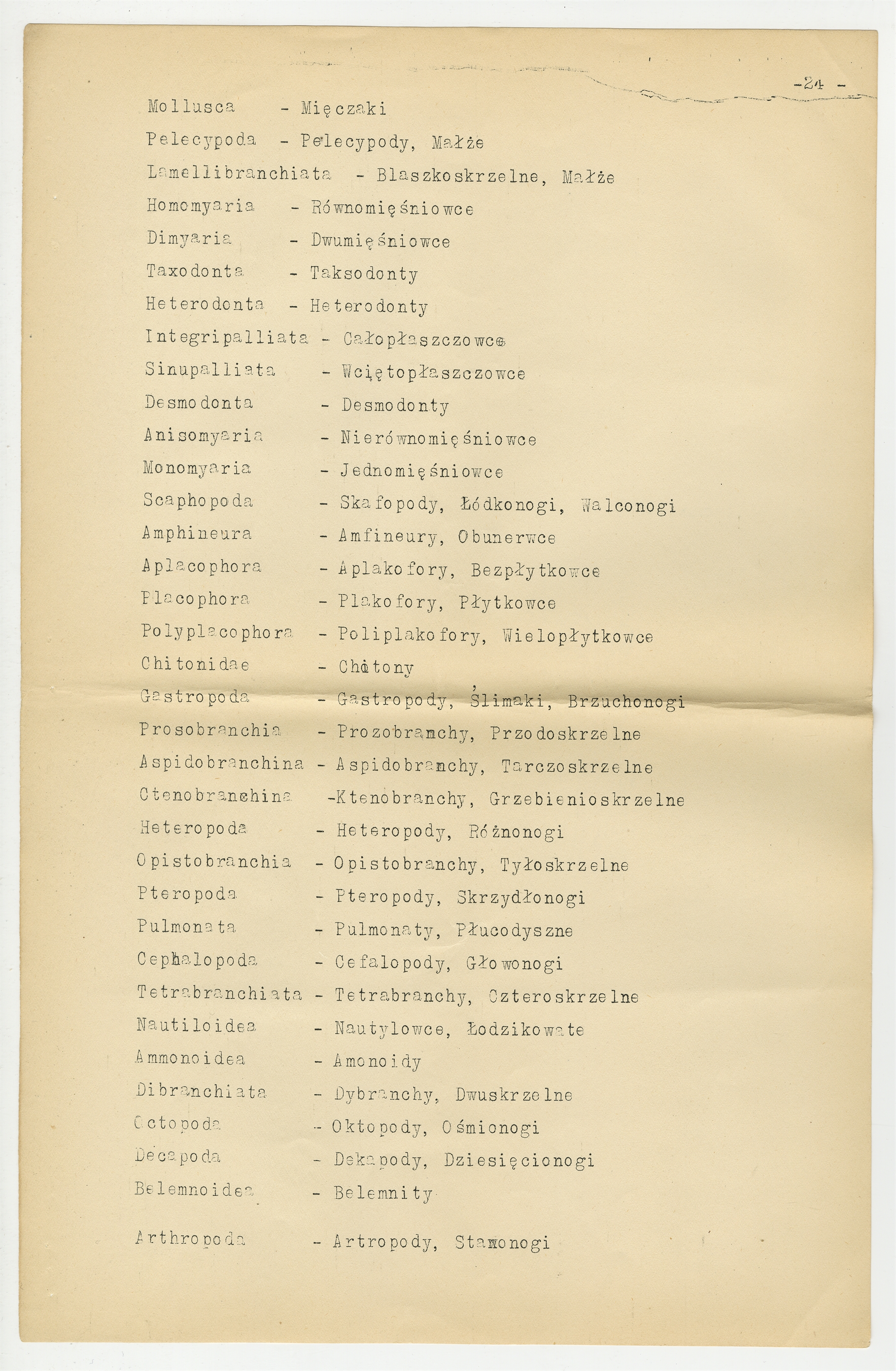 Maszynopis projektu zatytułowanego "Słownictwo Geologiczne i Paleontologiczne" przysłany do prof. Stefana Krukowskiego z Komisji do Spraw Słownictwa Geologicznego i Paleontologicznego; śródtytuł: Polska nomenklatura paleontologiczna (cd)
