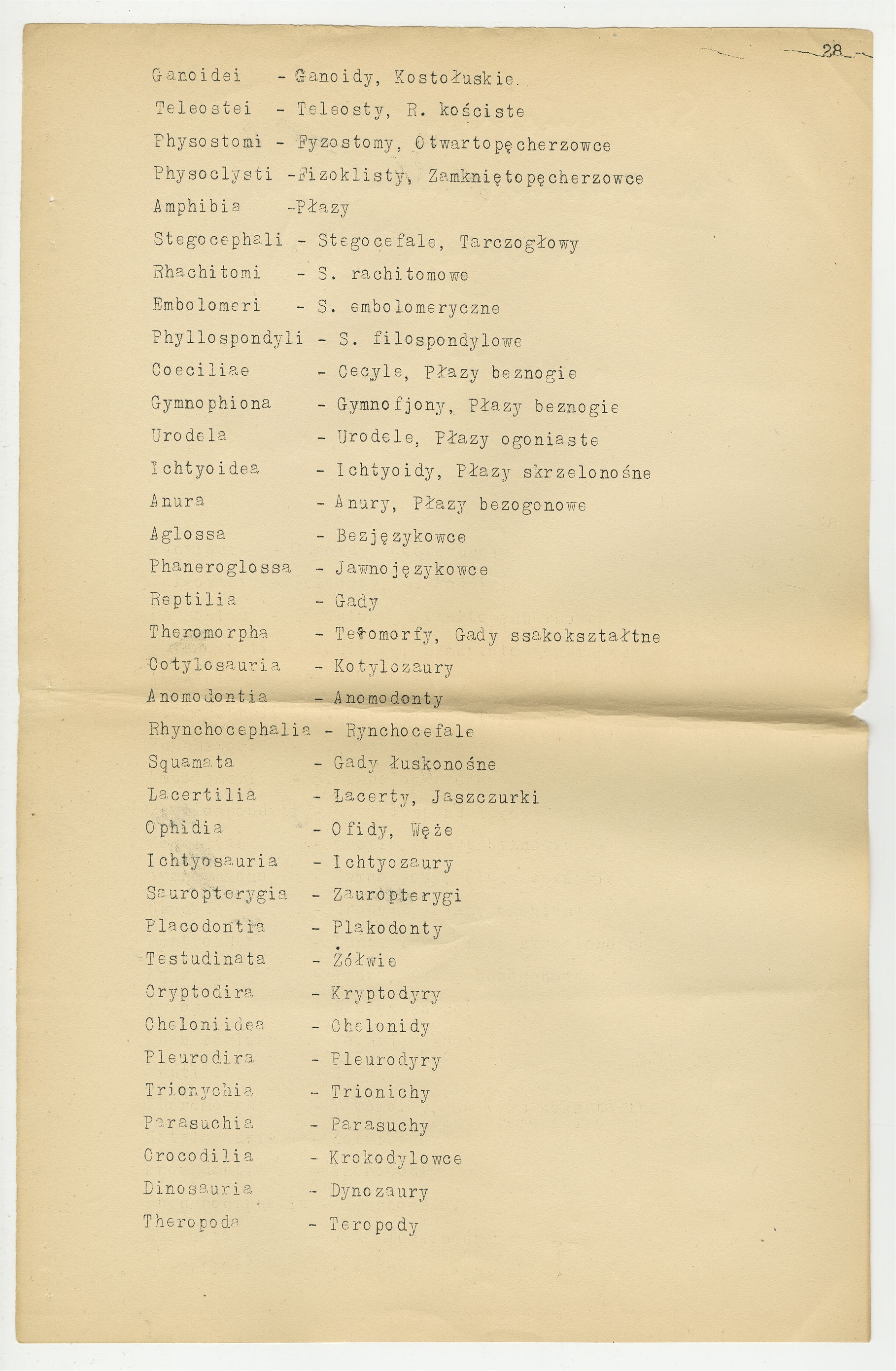 Maszynopis projektu zatytułowanego "Słownictwo Geologiczne i Paleontologiczne" przysłany do prof. Stefana Krukowskiego z Komisji do Spraw Słownictwa Geologicznego i Paleontologicznego; śródtytuł: Polska nomenklatura paleontologiczna (cd)