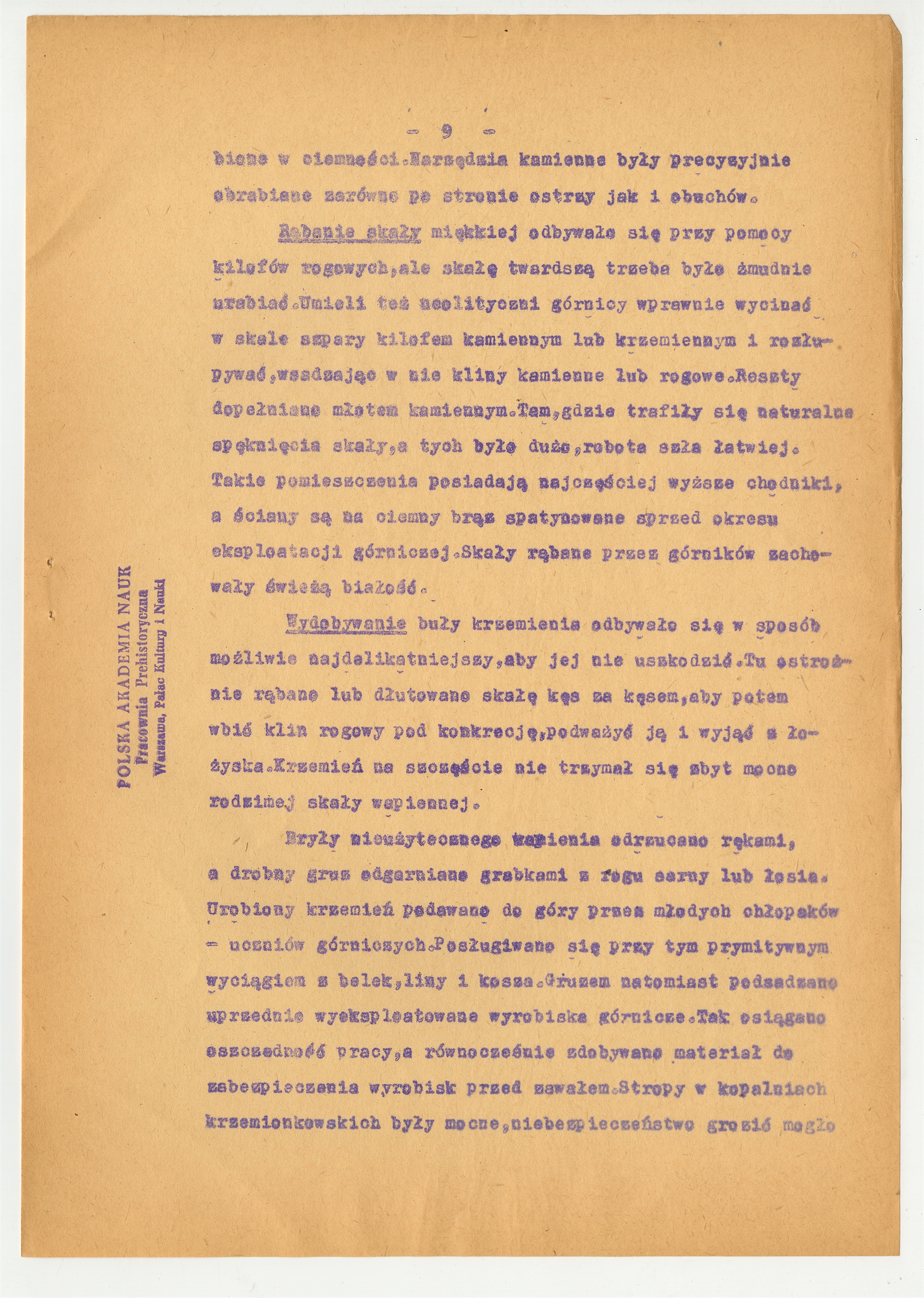 Maszynopis - referat Tadeusza Żurowskiego pt.: "Krzemionki Opatowskie - pomnik starodawnego górnictwa" z konferencji naukowej w Kielcach 28 V 1960 roku - strona 9