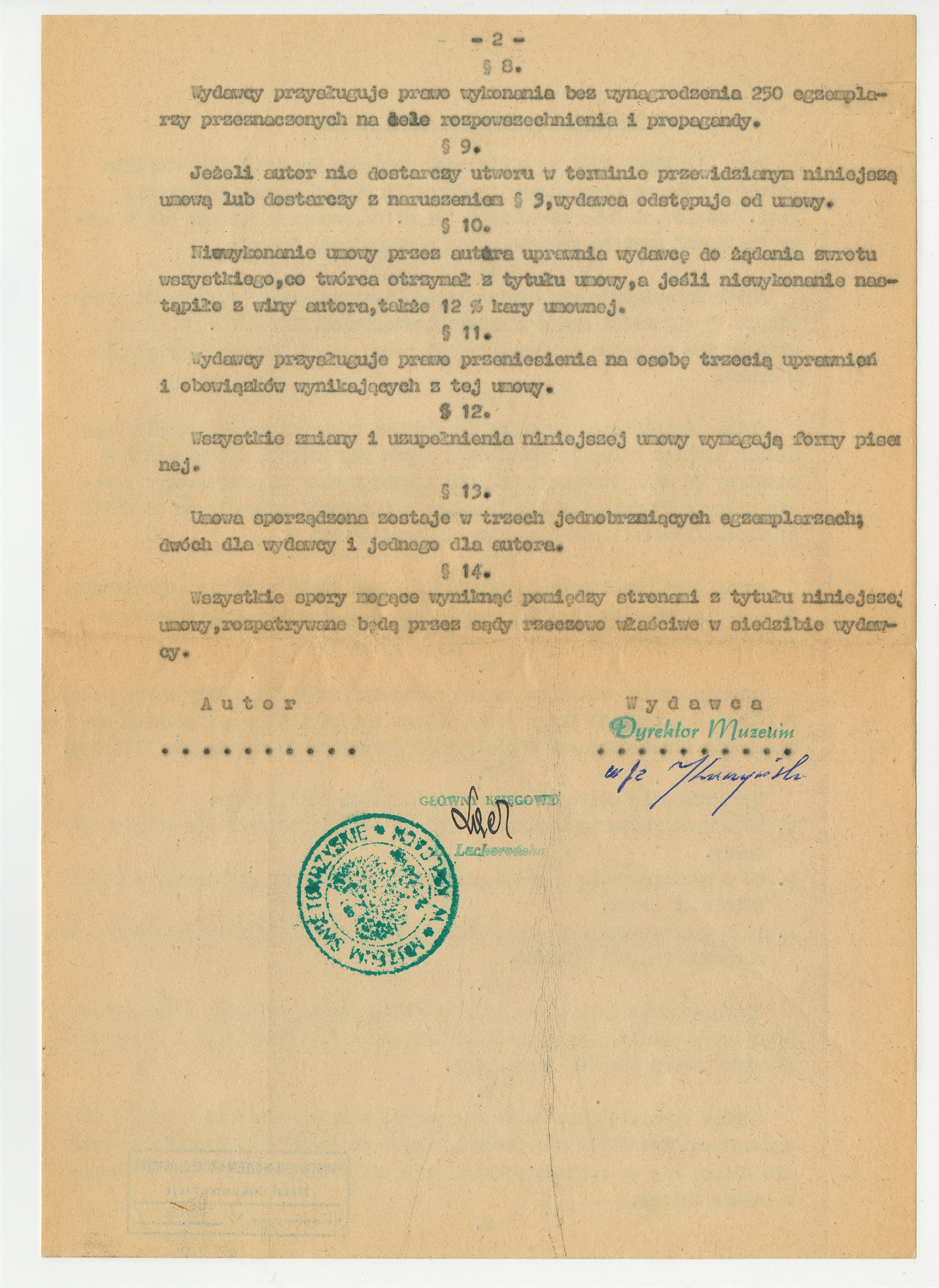 Maszynopis - umowa wydawnicza przygotowana przez Muzeum Świętokrzyskie dla Stefana Krukowskiego na pracę naukową pt: "Rezerwat Krzemionek?" - druga kopia strona 2