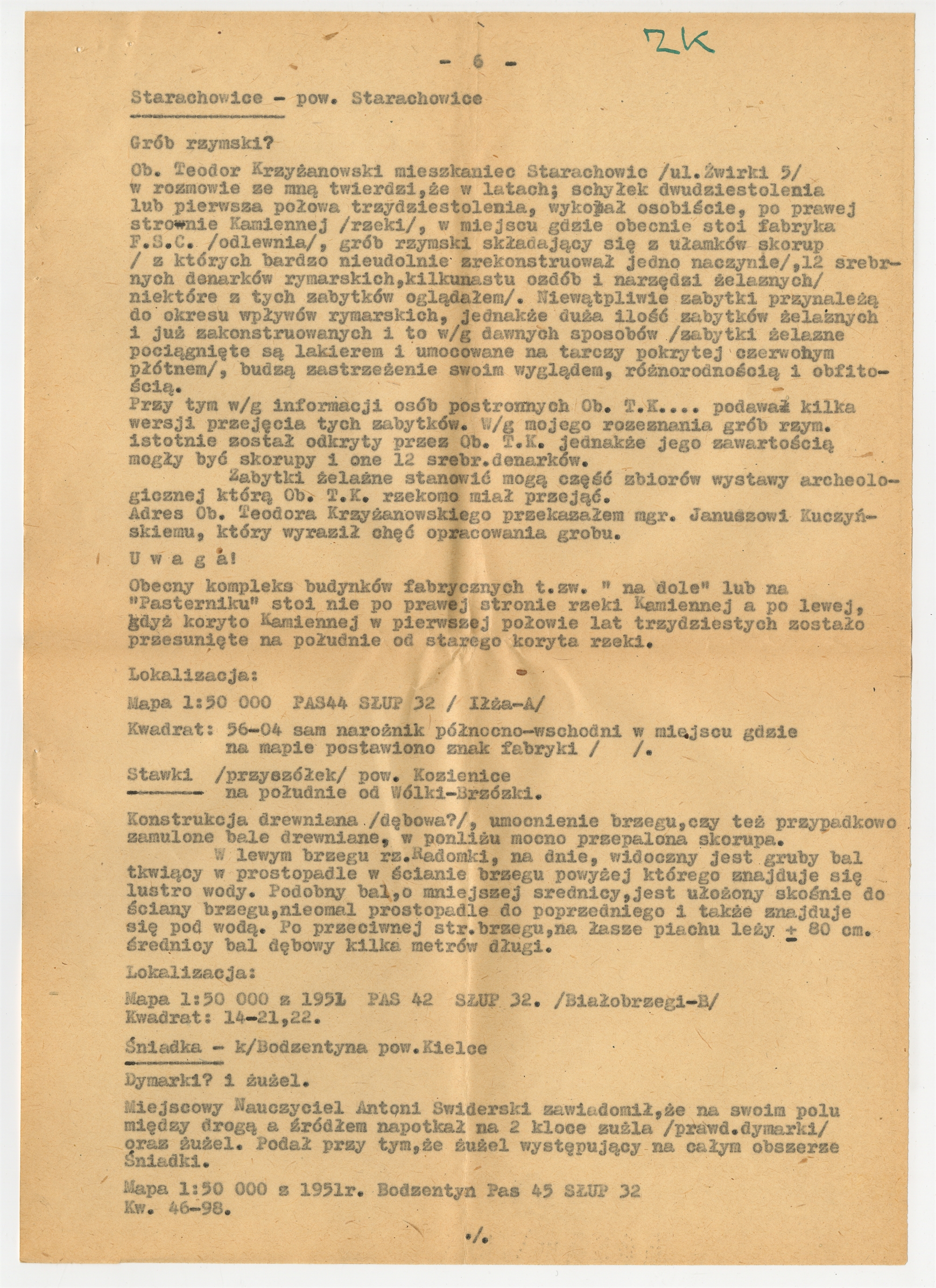 Maszynopis - wykaz stanowisk mgr Z.Krzaka przekazany S. Krukowskiemu w dniu 14 VIII 1958 roku przez S. Siedlaka - strona 6