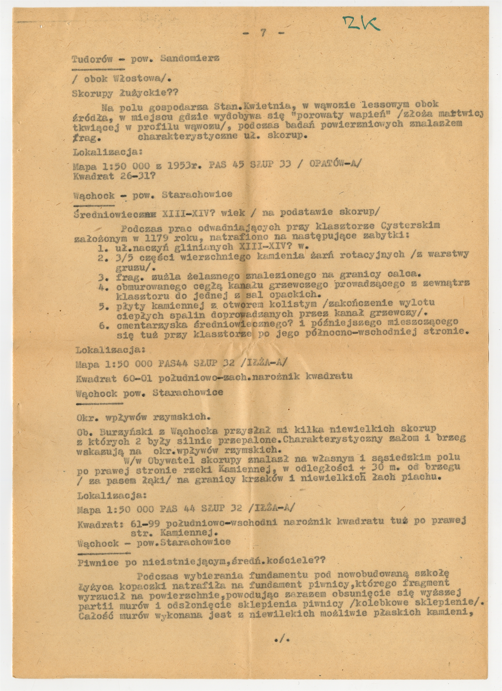 Maszynopis - wykaz stanowisk mgr Z.Krzaka przekazany S. Krukowskiemu w dniu 14 VIII 1958 roku przez S. Siedlaka - strona 7
