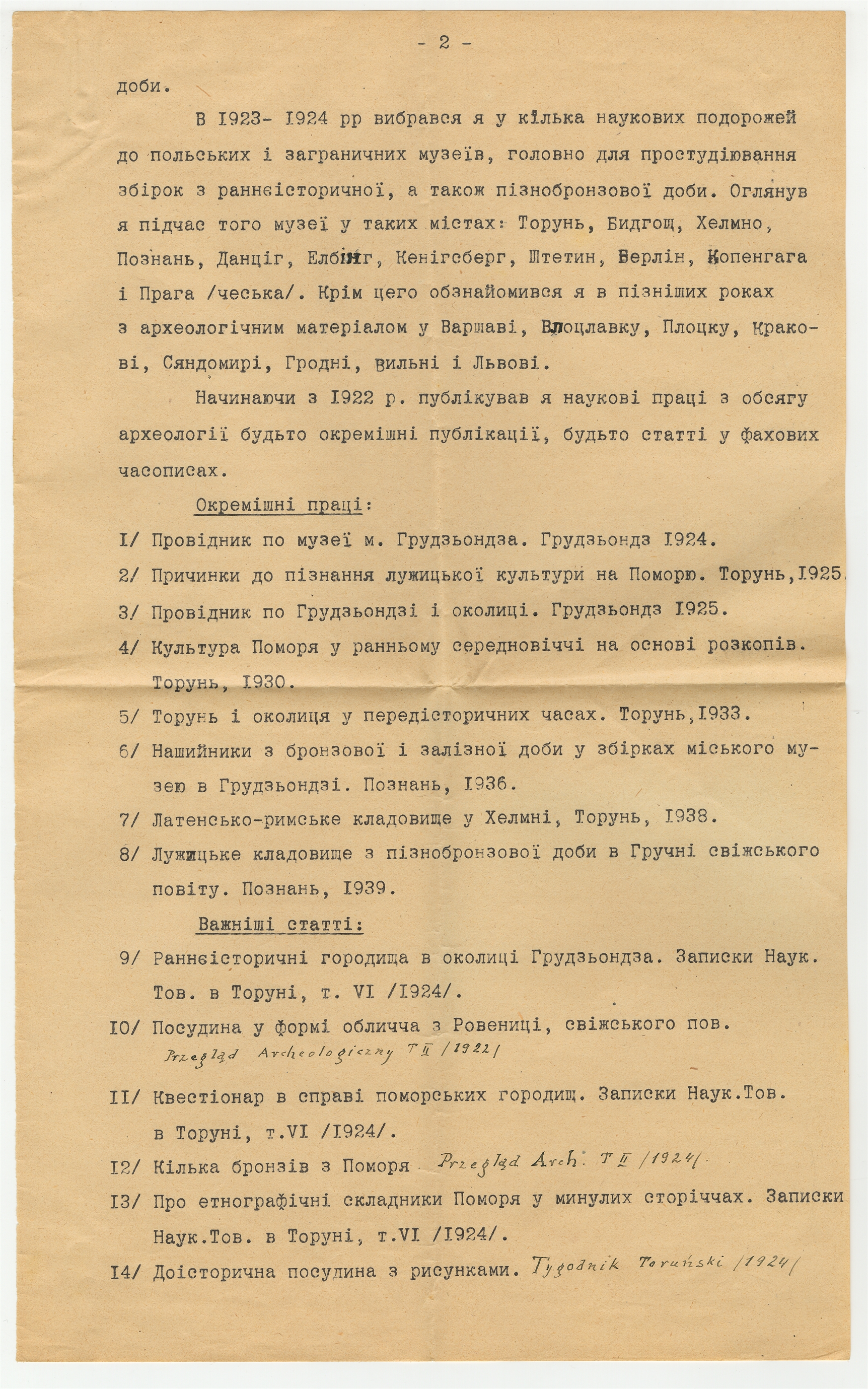 Maszynopis - życiorys w języku ukraińskim Władysława Łęgi z dnia 1 III 1940 roku (cd)