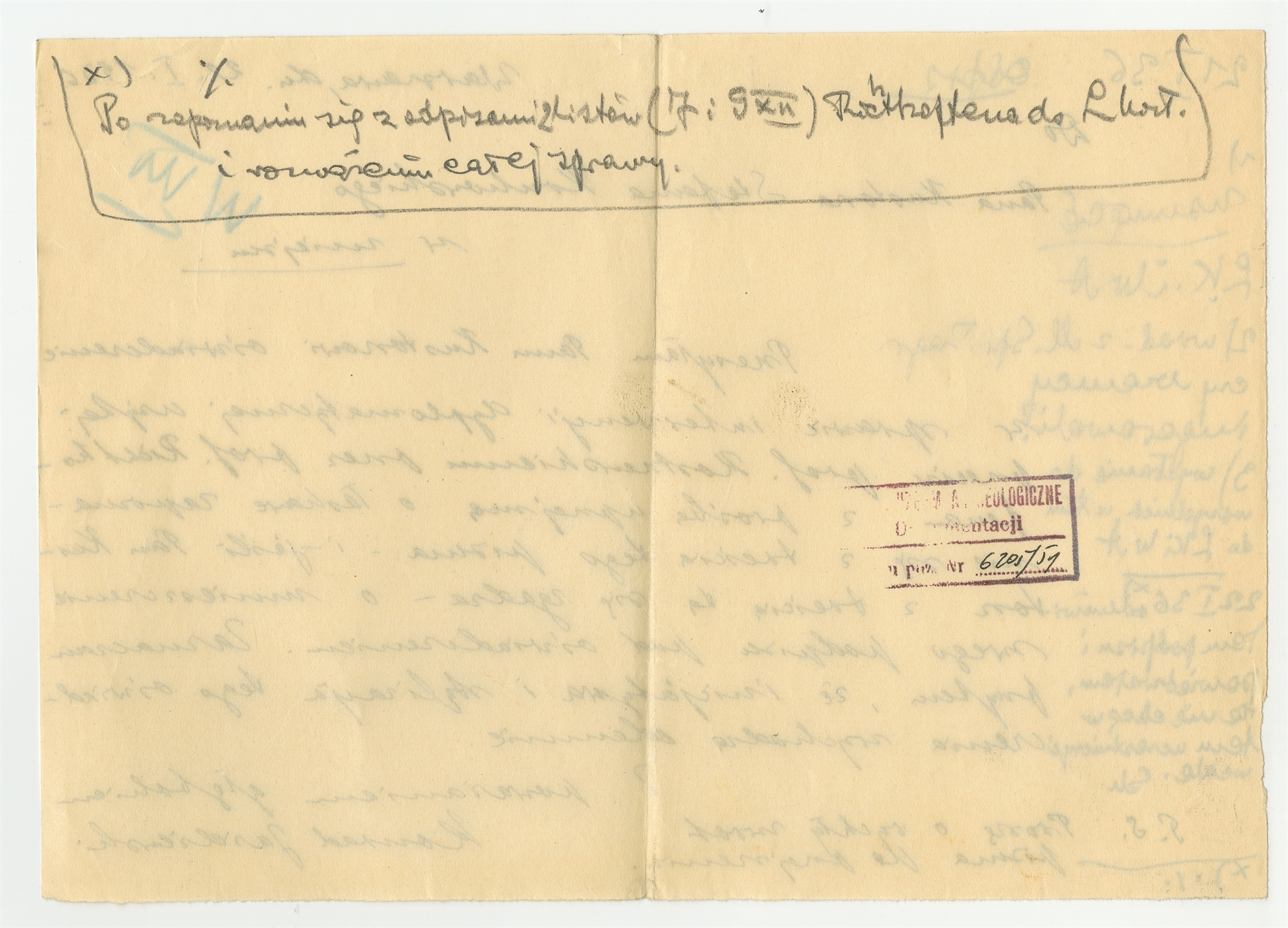 Notatka ręką Stefana Krukowskiego dotycząca treści listu
