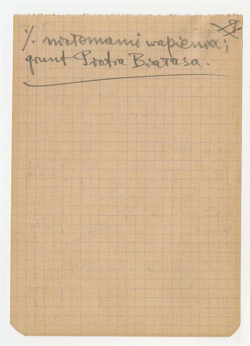 Notatki na kartkach wyrwanych z notatnika Orońsko - "% …niołomami wapienia..." autorska numeracja stron - odwrót strony 6 bez numeracji
