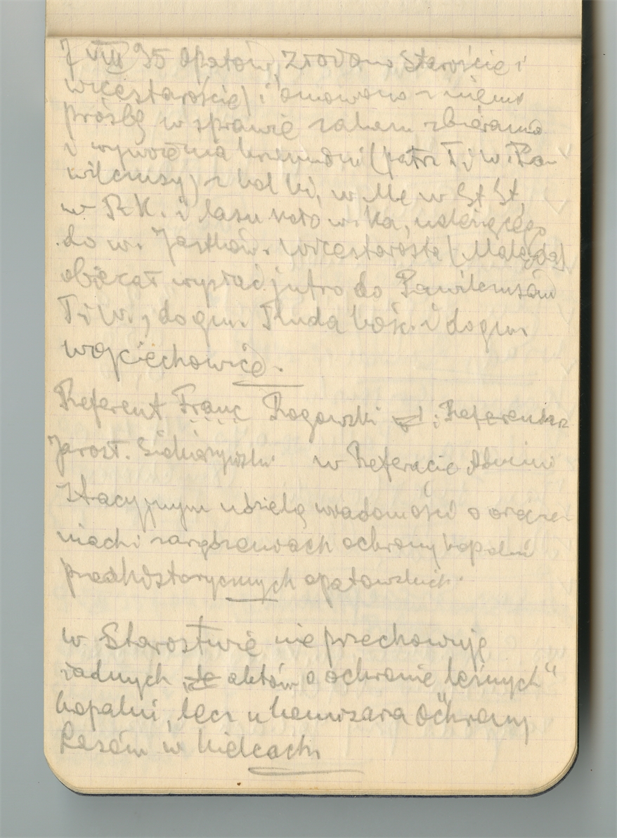 Notatnik czarna okładka z Napisem Bloc Ideal Jan Sybilski i S-ka - "7 VIII 35 Opatów … Staroście i wicestaroście..."