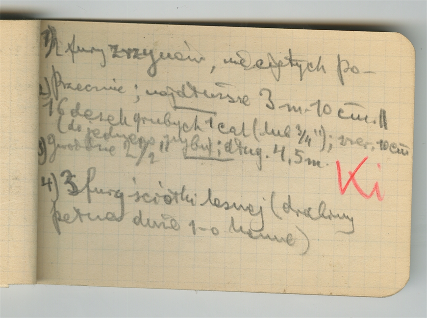 Notes z odręcznymi notatkami Stefana Krukowskiego - strona 11: "1) fury zrzynów nieciętych (…)"