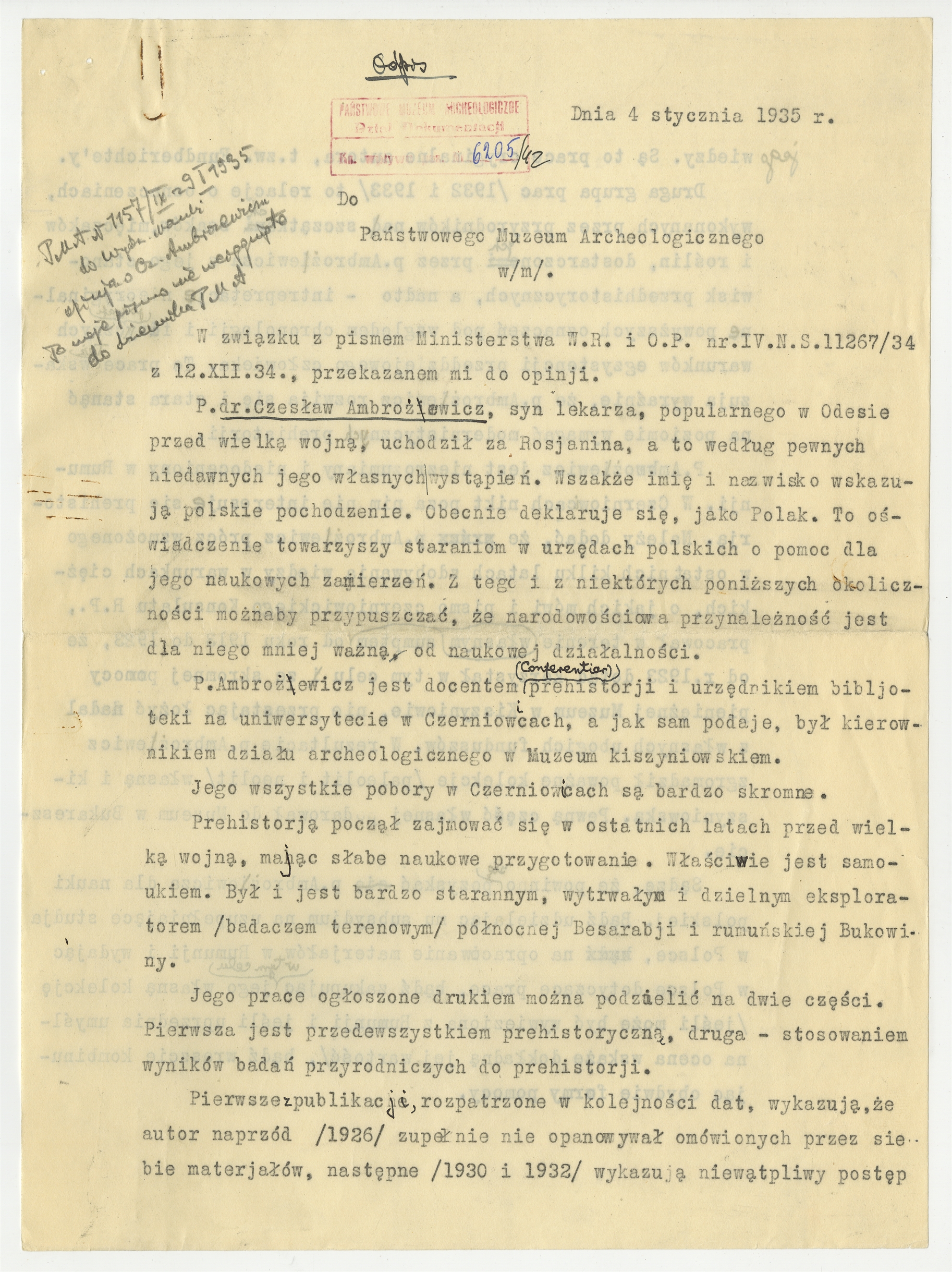 Odpis pisma prof. Stefana Krukowskiego z dnia 4 stycznia 1935 "Do Państwowego Muzeum Archeologicznego"