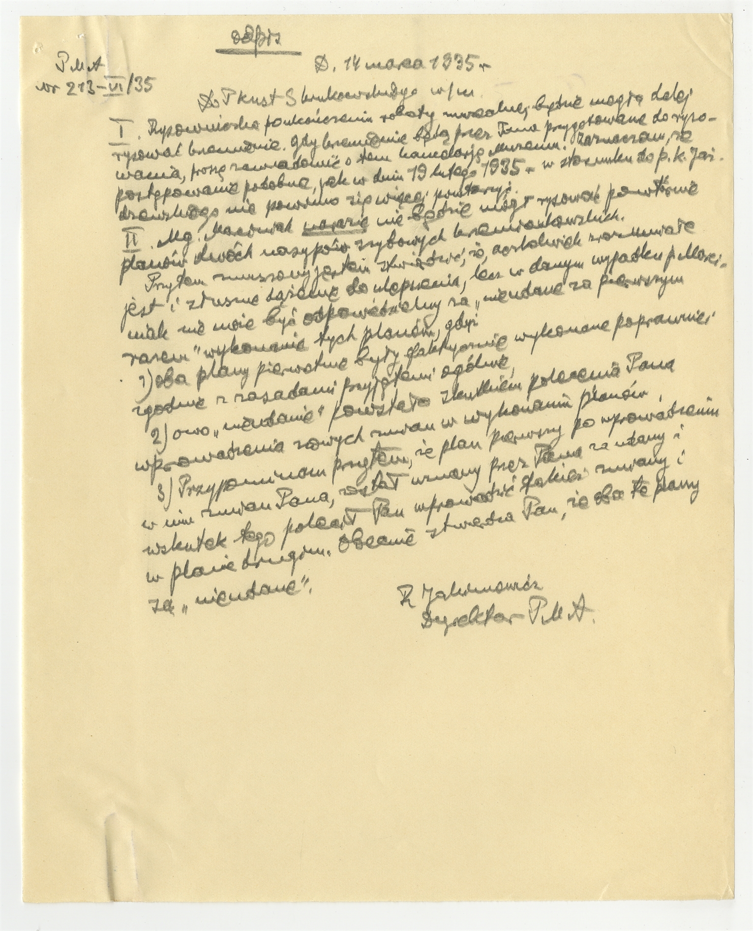 Odpis pisma z PMA (Nr 213-VI/35) z dnia 14 marca 1935 r. skierowanego do prof. Stefana Krukowskiego