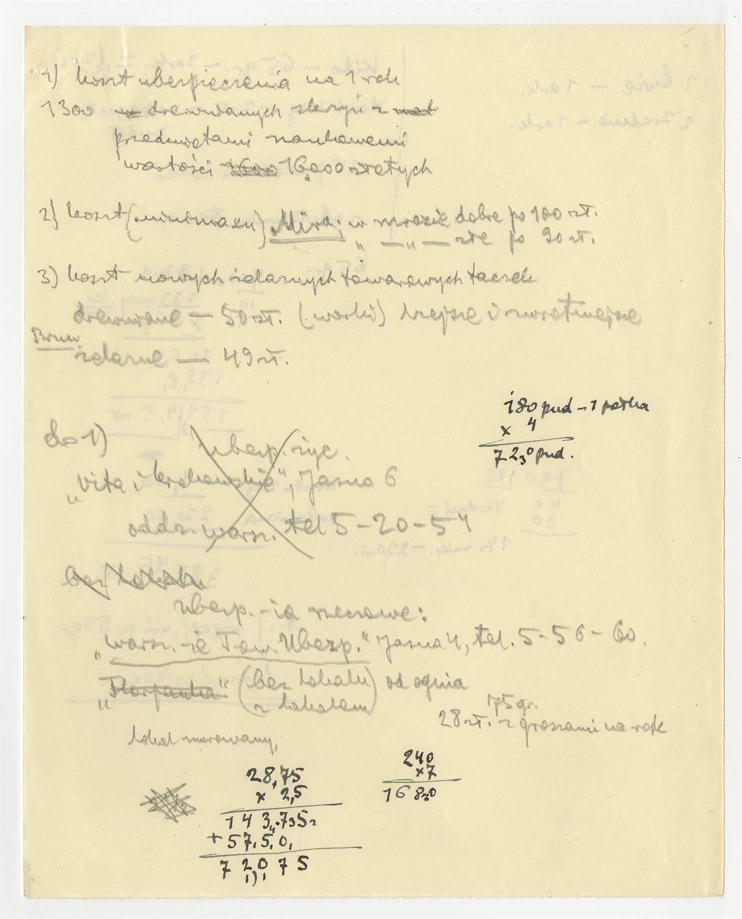 Odręczne notatki prof. Stefana Krukowskiego dotyczące "powierzchni obecnego lokalu" i wyliczeń kosztu transportu ubezpieczenia itp. (cd)