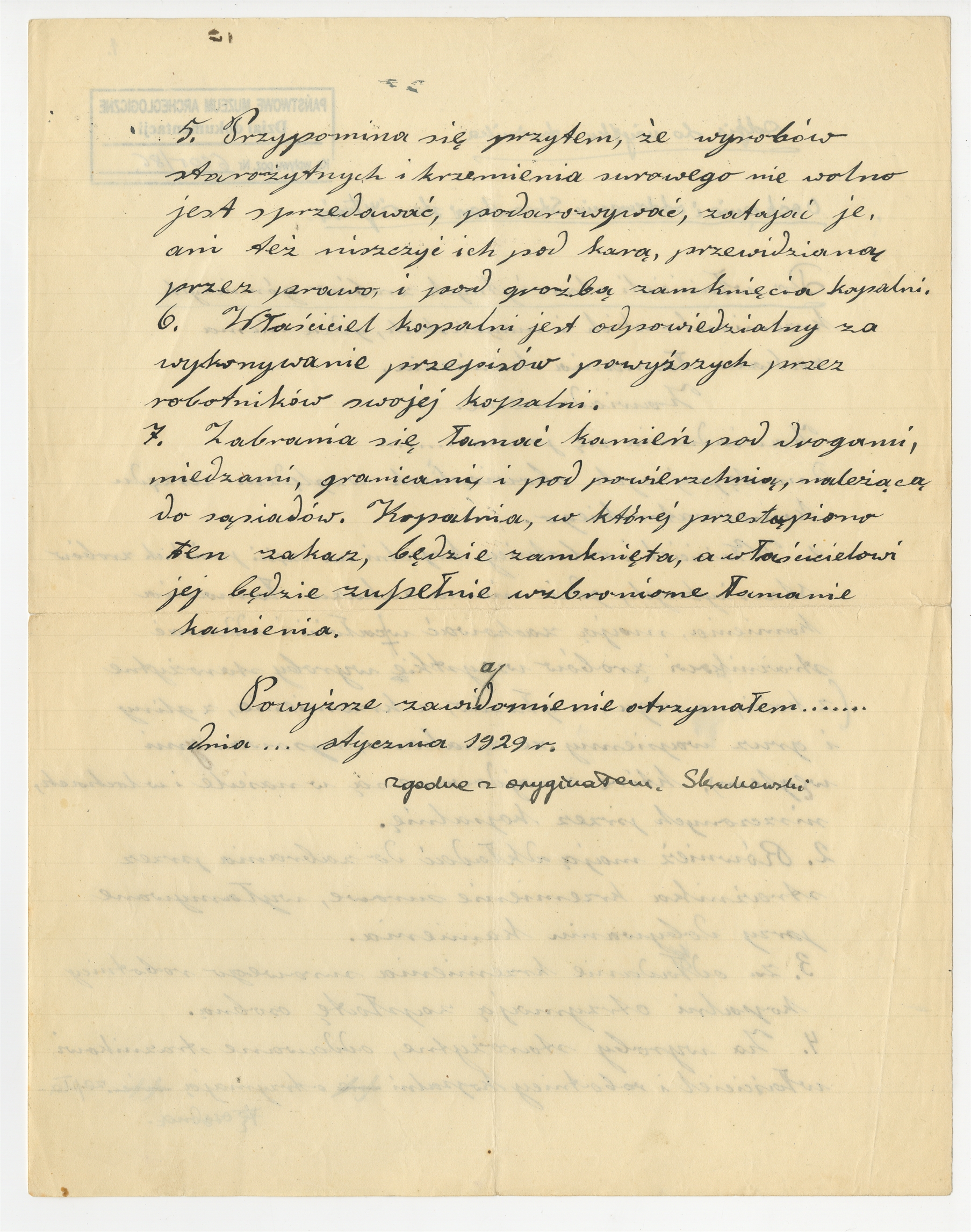 Odręczny odpis zawiadomienia "Do właścicieli starożytnych zrobów górniczych" - "Odpis do użytku strażnika" "O ochronie i oddawaniu Strażnikowi starożytności" (cd)
