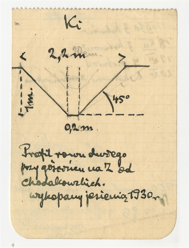 Odręczny rysunek - Profil rowu dużego przy gościńcu na Z od Chodakowskich wykopany jesienią 1930 r.